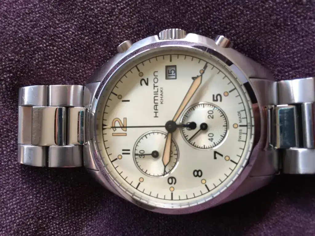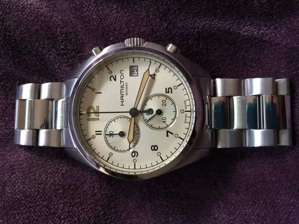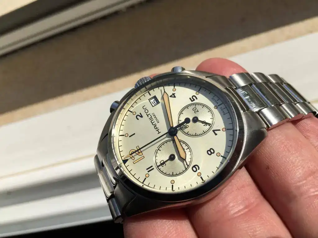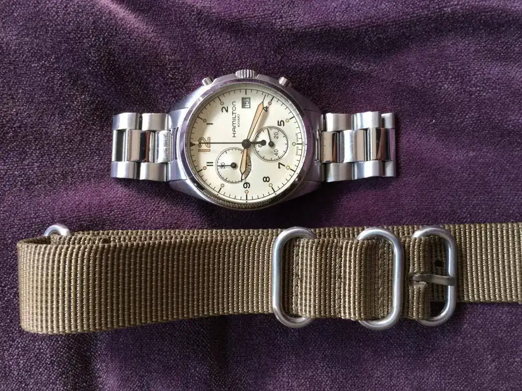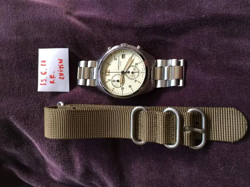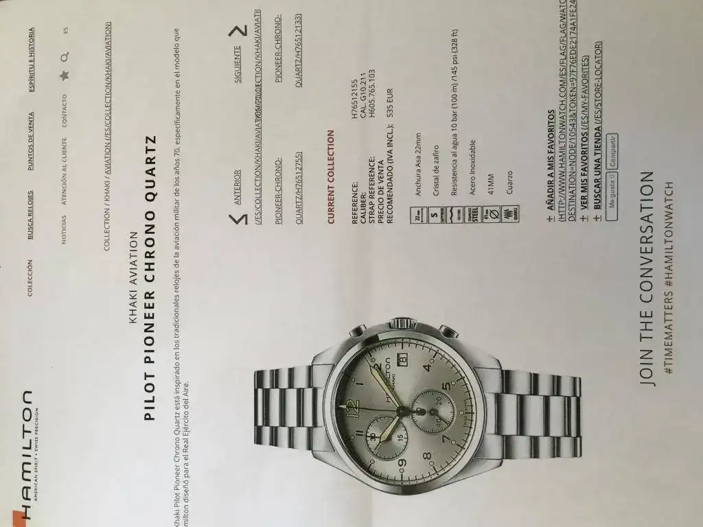 Buenos días saco a la venta este Hamilton Pilot Pionee Aviation Crono, en estado excelente, minimisimas marcas de uso, el armis esta para muñecas de 18cm aprox pero regalo una nato de calidad nueva que le queda de lujo; el reloj esta en catalogo actual y tiene un aire retro que lo hace diferente;su pvp es ee 535 yo lo saco por menos de la mitad; no quiero cambios ni relojes a cuenta que tengo muchos; muchas gracias!