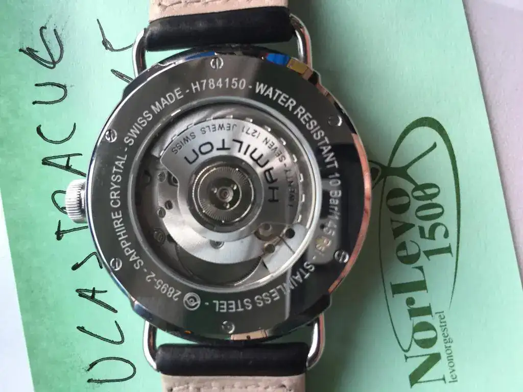 Buenos días a todos/as,saco para venta este Hamilton que apenas me pongo.Su estado es muy bueno(no es de reestreno pero casi)tiene algunas microrayas en las partes pulidas,no tiene ningún arañazo profundo ni golpe o abolladura por ningún sitio.Su estado de marcha es sobradamente COSC,está en 1'5/2" día,bueno ahora las fotos...gracias al foro por ceder el espacio,un cordial saludo.