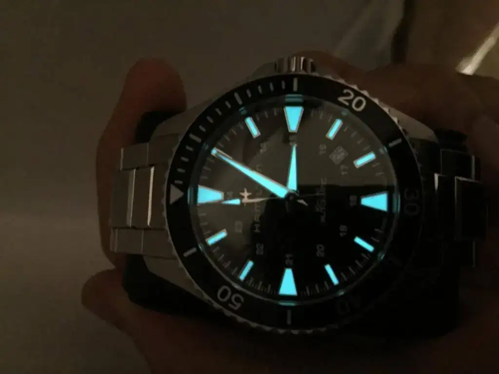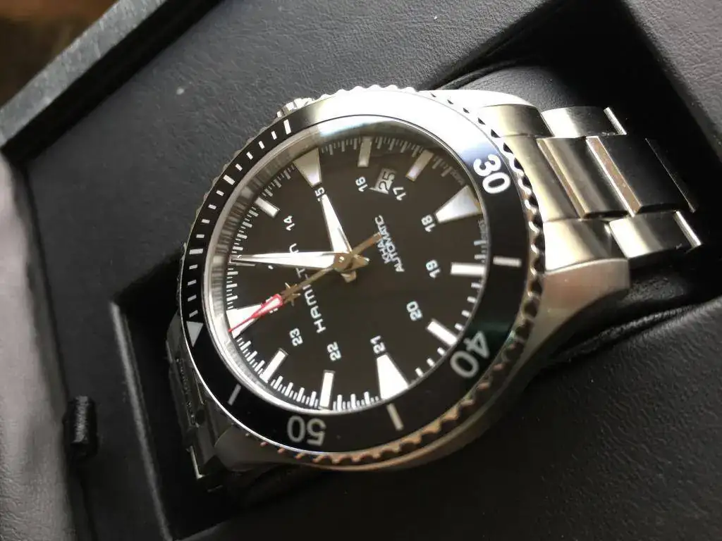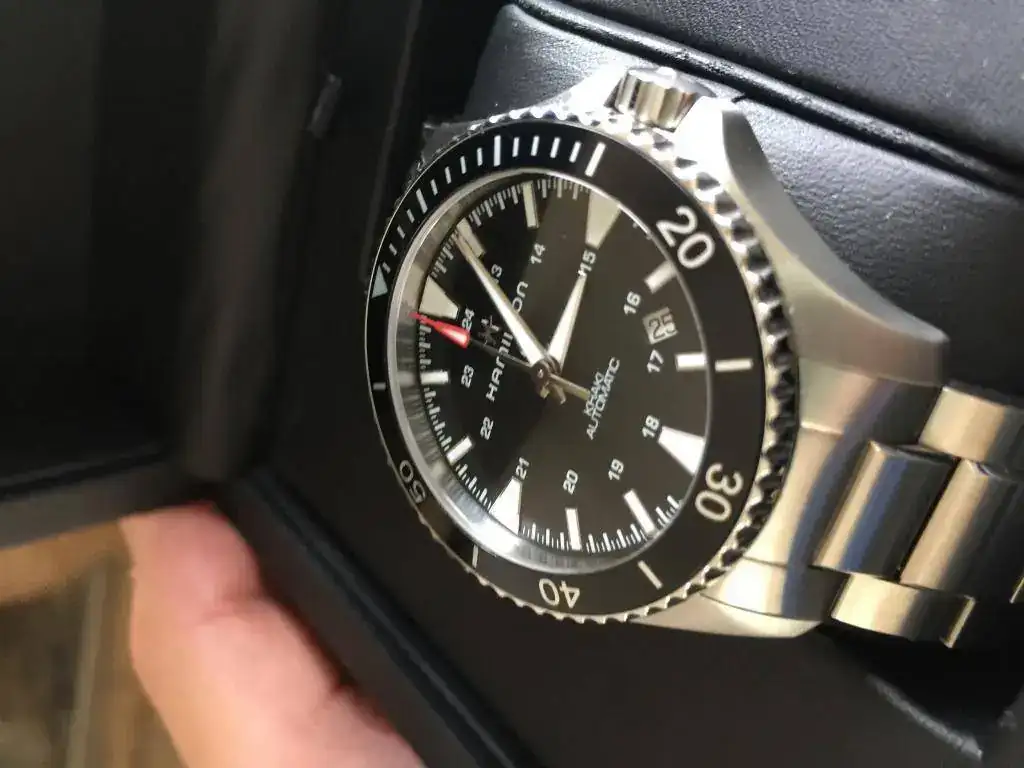 Saco a la venta este Hamilton de septiembre de 2017, tiene un mes, esta nuevo, sus 40mm se me hacen un pelin justos para mi muñeca y mi tamaño. Solo deseo venta ya que acabonde comprar otro; su pvp es de 700€. Espectacular con su luminova azul, sin mas, descripcion y fotos: