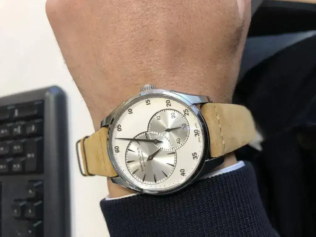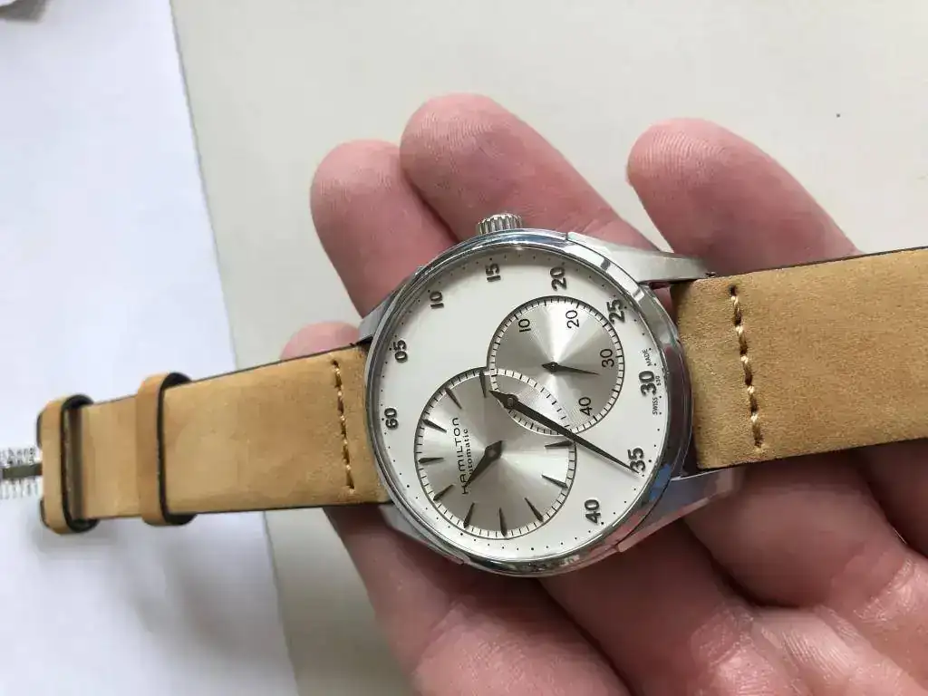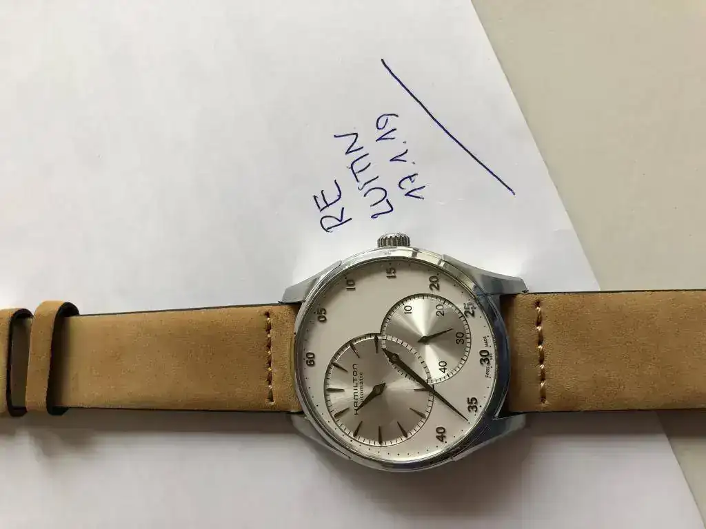 Pongo a la venta este poco visto Hamilton Regulator automatico, en buen estado, solo presenta algunas pequeñas marquitas en el bisel que es pulido a espejo y en una de las asas. Le he puesto una correa de piel italiana hecha a mano a estrenar de piel vuelta que le queda espectacular y conservo su deployante Hamilton original.