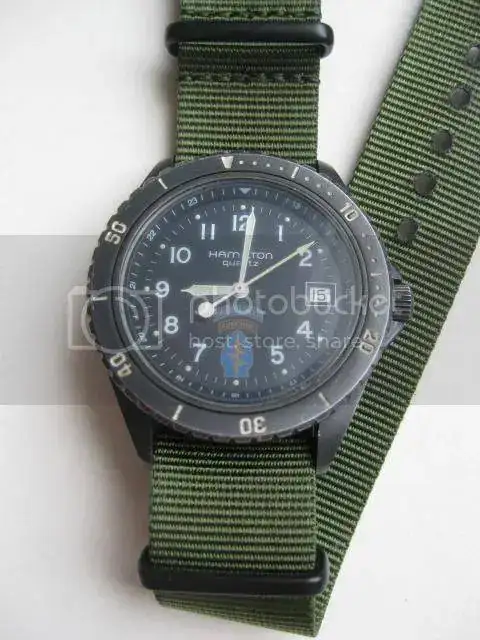 hoy propongo para cambio un reloj muy raro y especial. Se trata de un diver fabricado por Hamilton para las Fuerzas Especiales del ejercito de los Estados Unidos, los conocidos como Boinas Verdes, el Hamilton Special Forces Airborne. Es un reloj que núnca se comercializó en el mercado civil. Se fabrico sobre 1996 y que toma como base el Hamilton Khaki Sub 660ft.