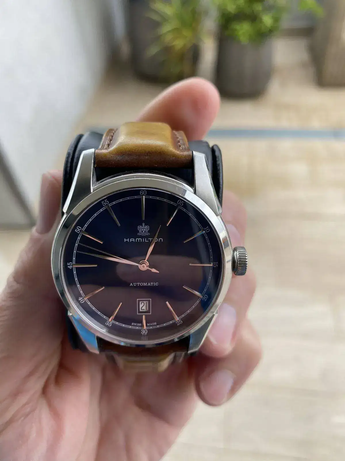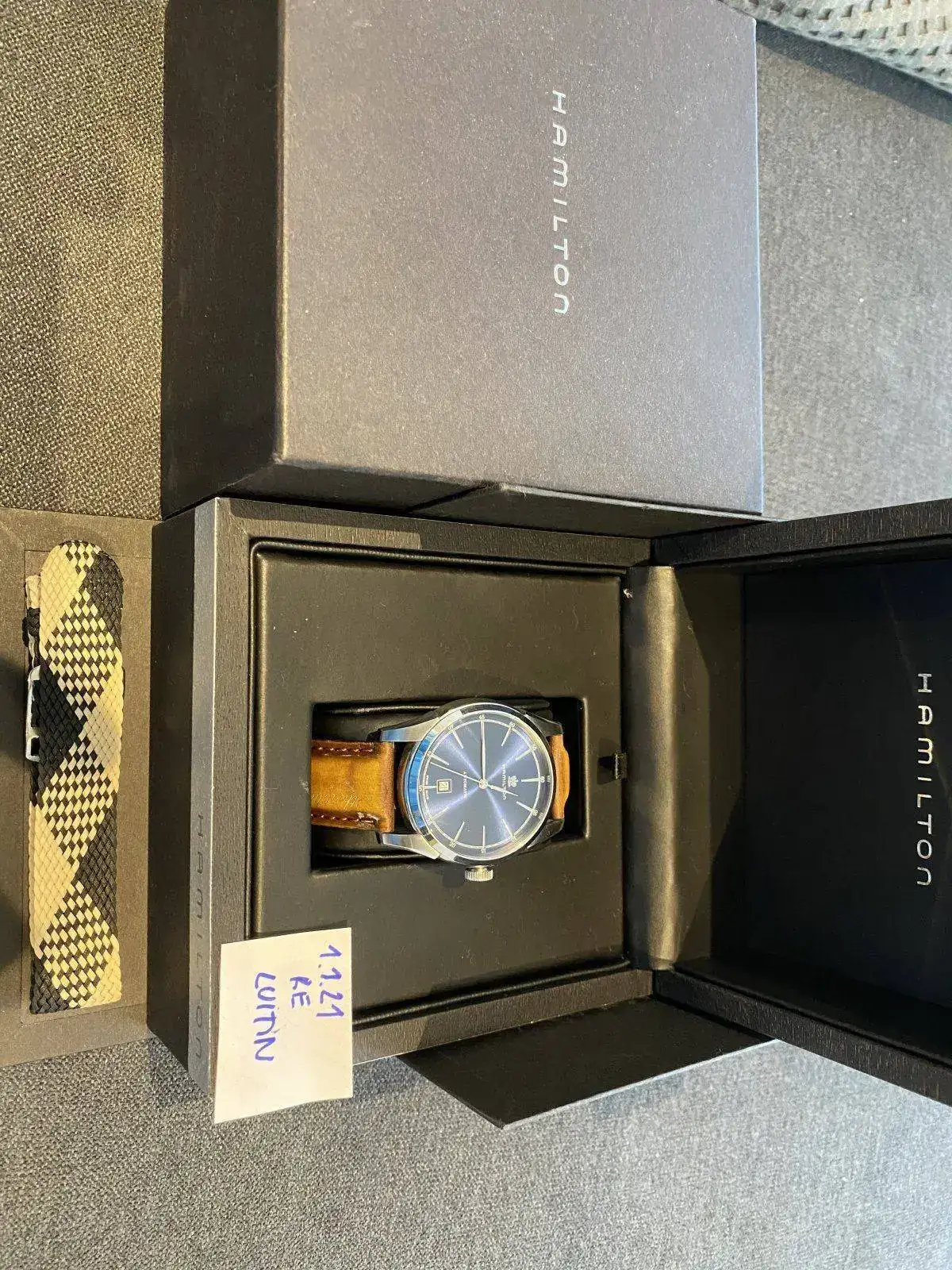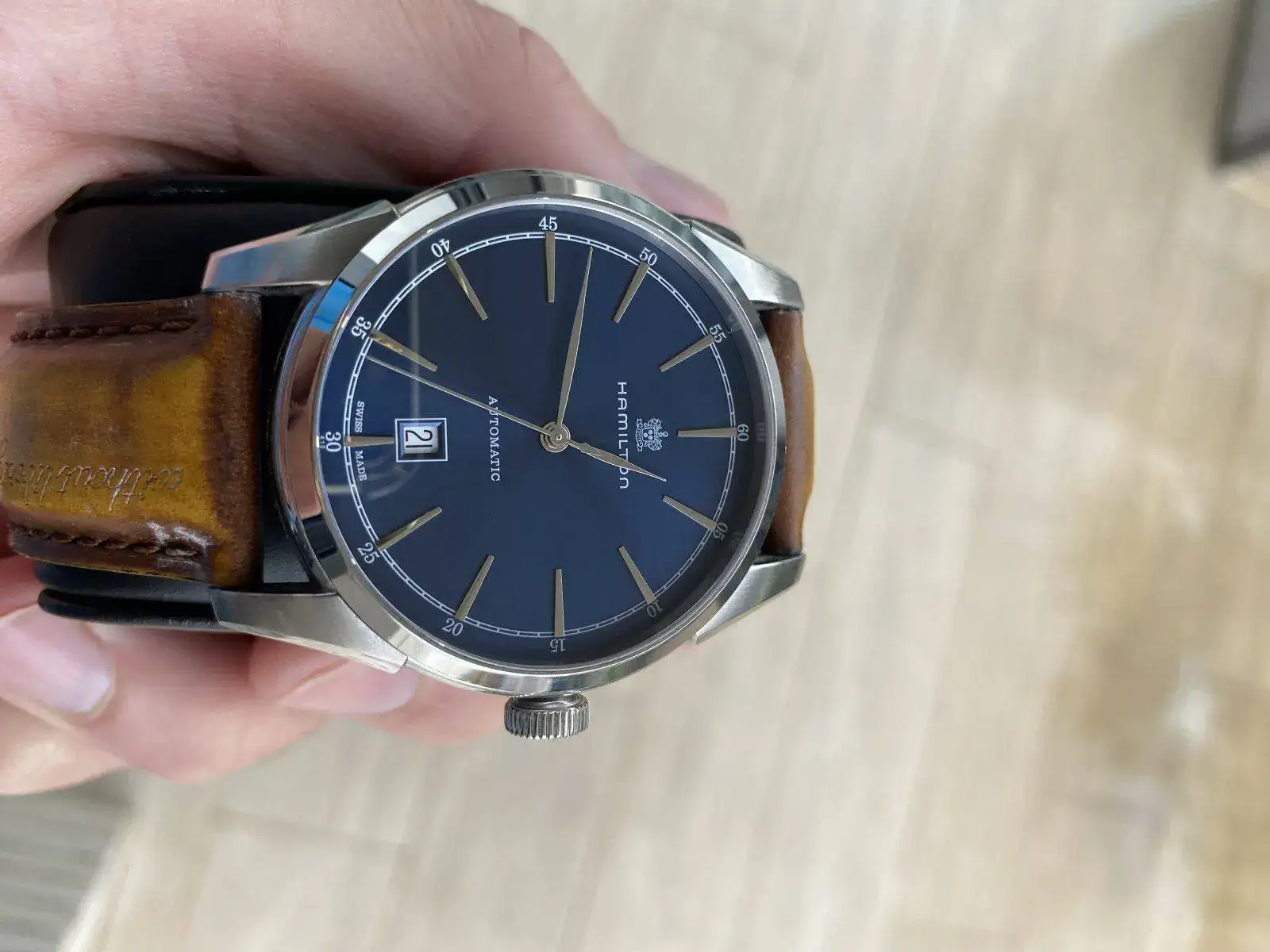 Buenos dias, Saco a la venta este precioso reloj Hamilton de la colección Timeless Classic, Spirit of liberty. Monta el movimiento H-10 con 25 rubis de Hamilton y 80 horas de reserva de marcha, con rotor esqueletizado y visto gracias al fondo de cristal. Correa de piel con grabación de serie "without liberty life is a misery" y hebilla desplegable, fondo visible y cristal de zafiro, esfera azul espectacular con matices segun incida la luz. Nada destacable sobre su estado, es excelente. Regalo correa marron nato para hacerle un look diferente