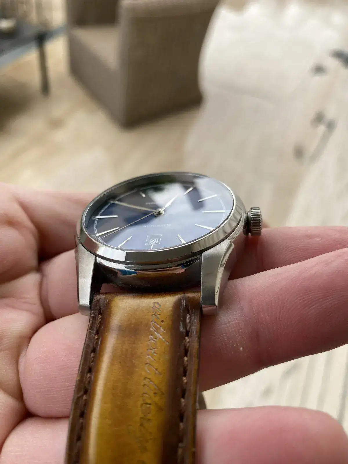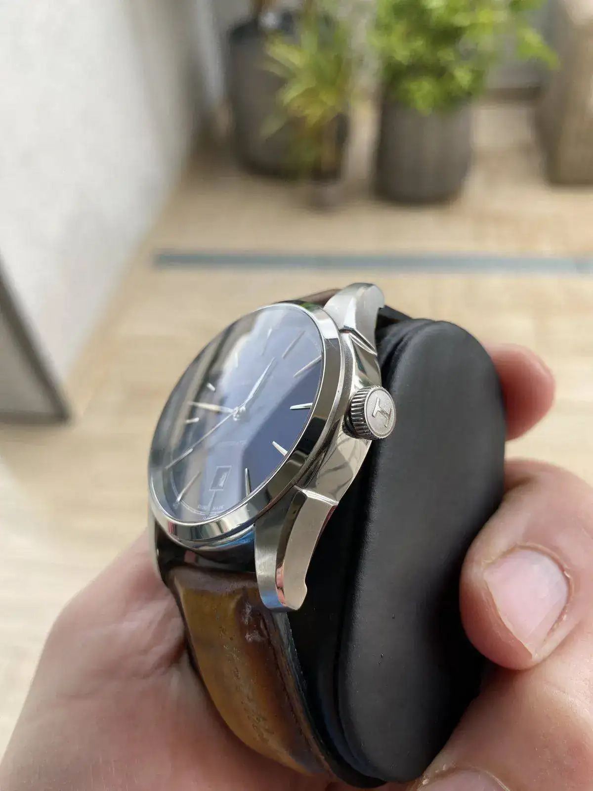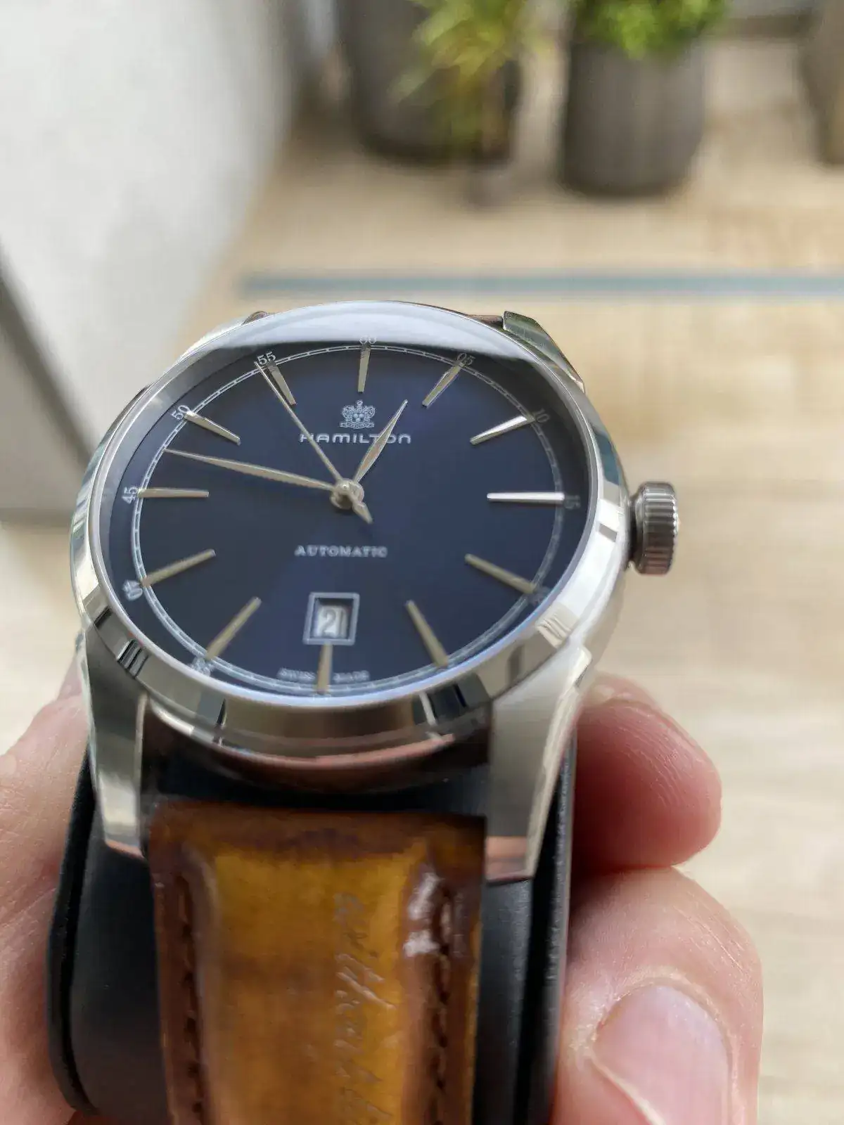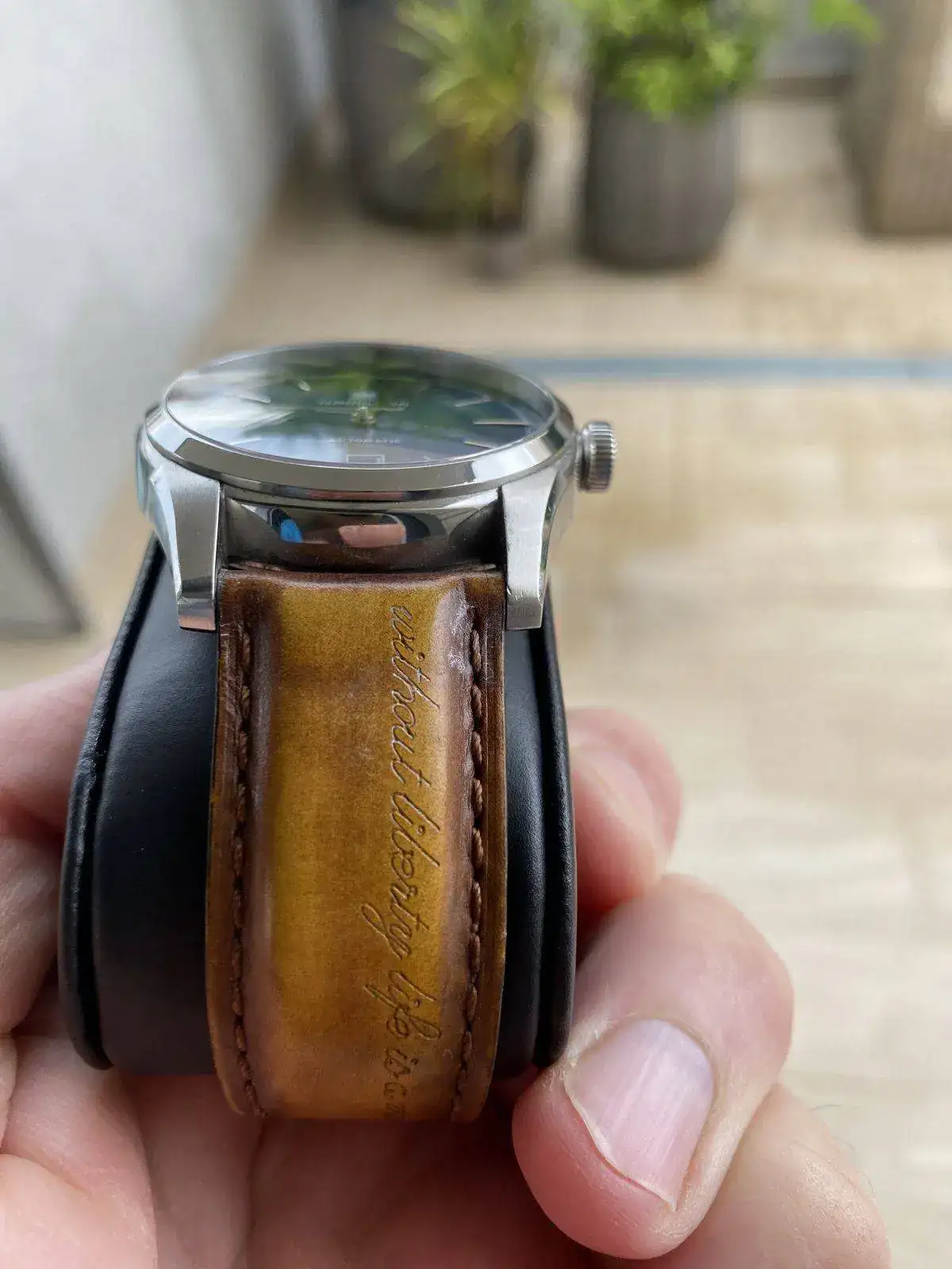 Buenos dias, Saco a la venta este precioso reloj Hamilton de la colección Timeless Classic, Spirit of liberty. Monta el movimiento H-10 con 25 rubis de Hamilton y 80 horas de reserva de marcha, con rotor esqueletizado y visto gracias al fondo de cristal. Correa de piel con grabación de serie "without liberty life is a misery" y hebilla desplegable, fondo visible y cristal de zafiro, esfera azul espectacular con matices segun incida la luz. Nada destacable sobre su estado, es excelente. Regalo correa marron nato para hacerle un look diferente