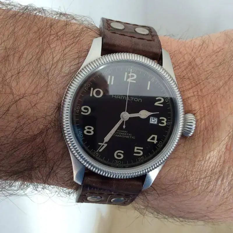 Dado que el reloj es practicamente nuevo, en garantia vigente y que incluye una magnifica correa del maestro Jacobo a medida, creo que es un buen precio, una buena oportunidad para quien busque un bonito reloj de piloto de calidad.