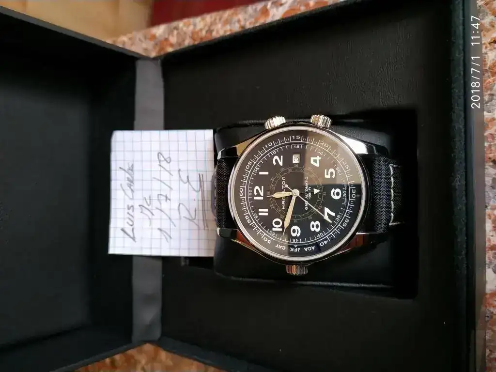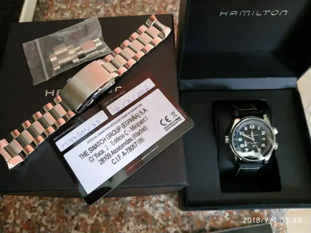 Buenos días compañeros, pongo a vuestra disposición un reloj que me ha sorprendido por su calidad y acabados, se trata de este Hamilton UTC, en muy buen estado y con armis original,el reloj tiene la función GMT y es estanco a 300m a y antimagnetico...mejor voy poniendo la ficha