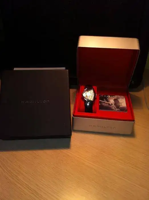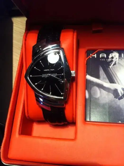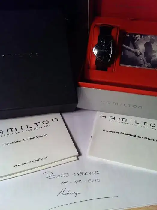 Saco del estuche éste Hamilton Ventura del 2006 con maquinaria de cuarzo ETA y cristal de zafiro, el cual es un modelo de sobra conocido por todos. Me lo habré puesto como máximo 15 veces y el estado es muy bueno, únicamente tiene marcas del uso, nada que no elimine un pulido, también aporto cajas y documentación originales. El modelo Ventura fué el primer reloj electrónico y adquirió su fama porque aparecía en la muñeca del Rey del Rock en la pelicula Blue Hawaii allá por 1961, posteriormente lo pudimos ver en Men In Black, o en la muñeca de Loquillo sin ir más lejos.