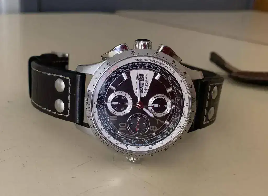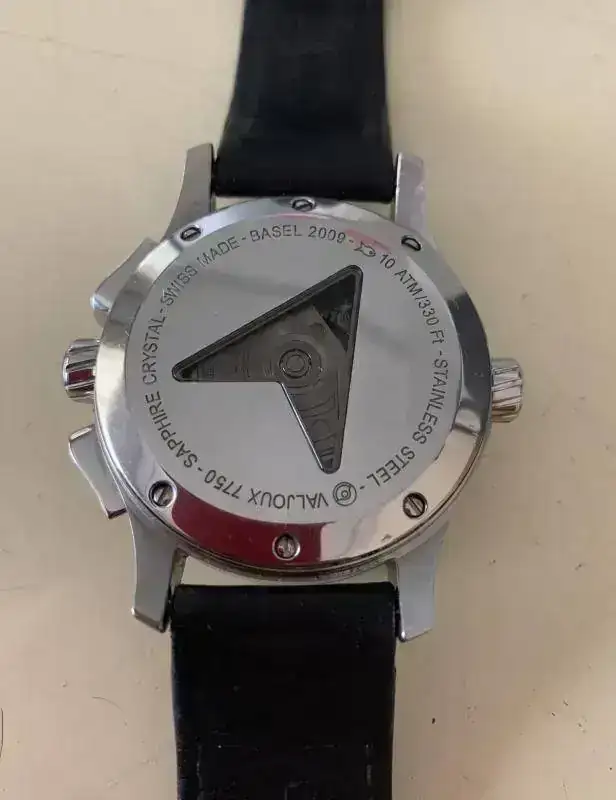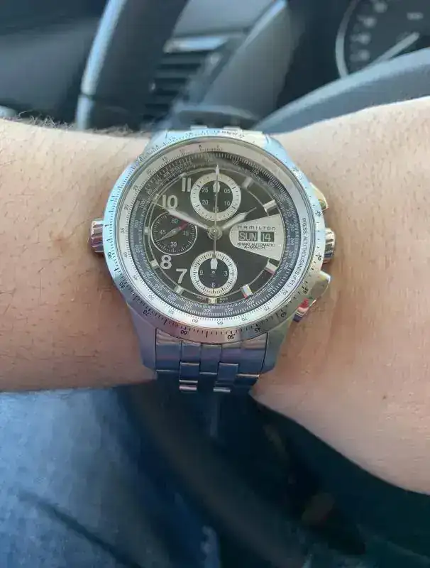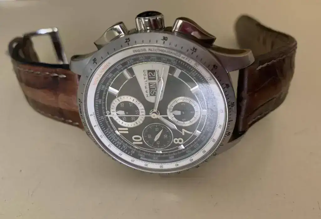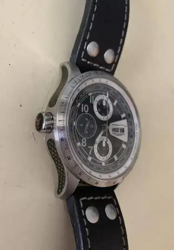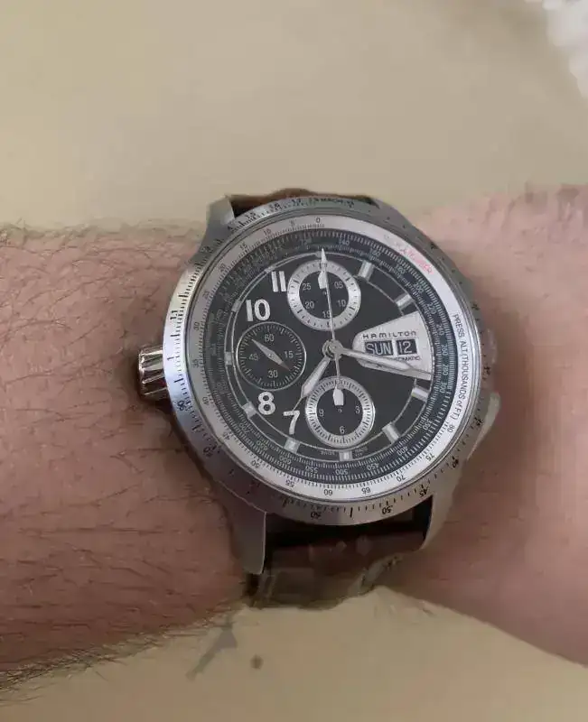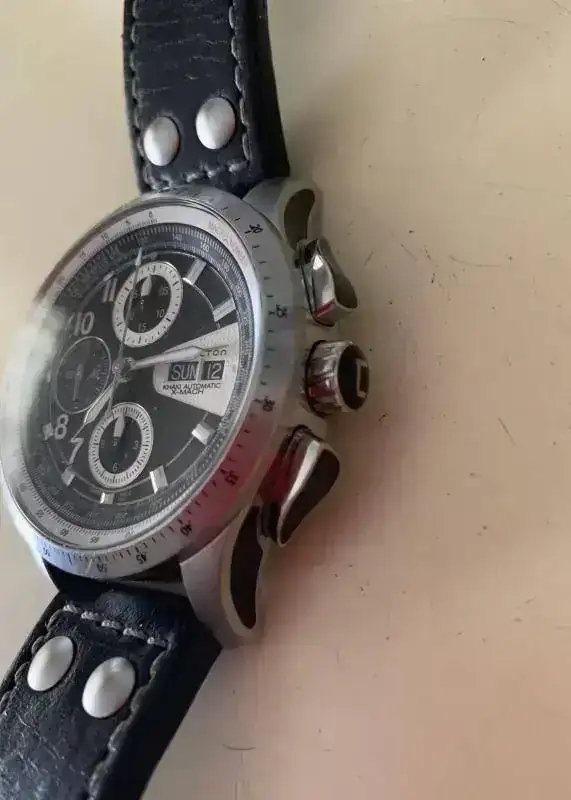 Buenos días. Saco a la venta un poco visto Hamilton x-mach;crono automático, primo hermano del x-wind. El reloj está usado y puede apreciarse en los típicos pelillos del bisel, pero no tiene golpes ni nada parecido. Añado 3 correas. La marrón tiene uso pero creo que aún puede usarse. La negra tiene menos uso pero mencionar que tiene hechos dos agujeros más, y la de acero está usada, pero con un cepillado quedaría nueva. Teniendo todo esto en cuenta le pongo un precio bastante acorde,en mi opinión, de 610€ con el envío incluido por mrw sin asegurarar.tambien puedo entregarlo en mano por madrid sur. En principio podría aceptar como parte de pago un Certina DS action o un Hamilton belowzero en acero, pero escucharé propuestas de cambio.cualquier cosa podéis escribirme un mp.