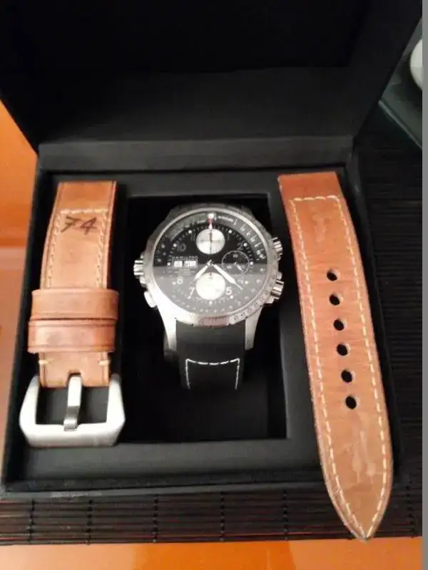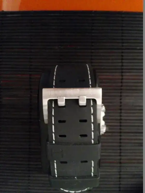 Lo compre con el caucho por que no me gusta la correa de piel que trae de la casa, por lo que le encargue una al maestro Jacobo.