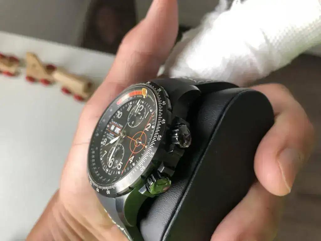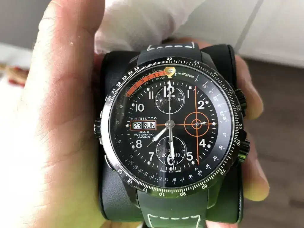 Saco a la venta este Hamilton Black Pvd X-wind Automatic Chronograph H77686133 Edicion Limitada y numerada de 2000[/h]Estado: bueno, con marquitas de uso pero nada importante, quizas la marquita en el asa inferior izquierda (ver foto); la correa es nueva original Hamilton