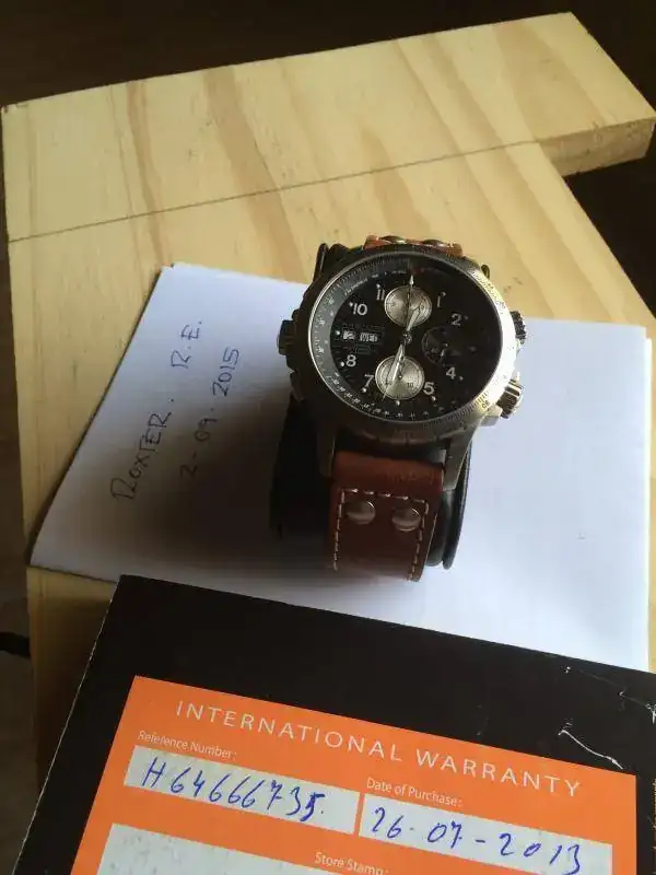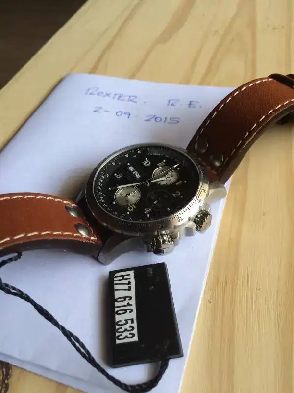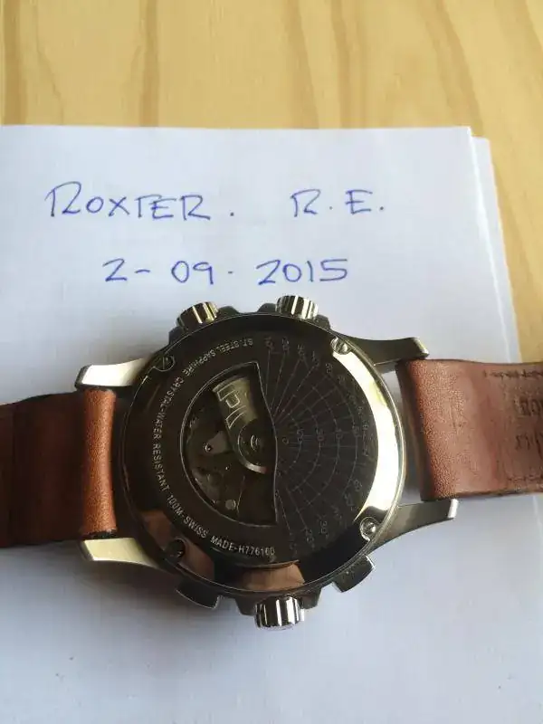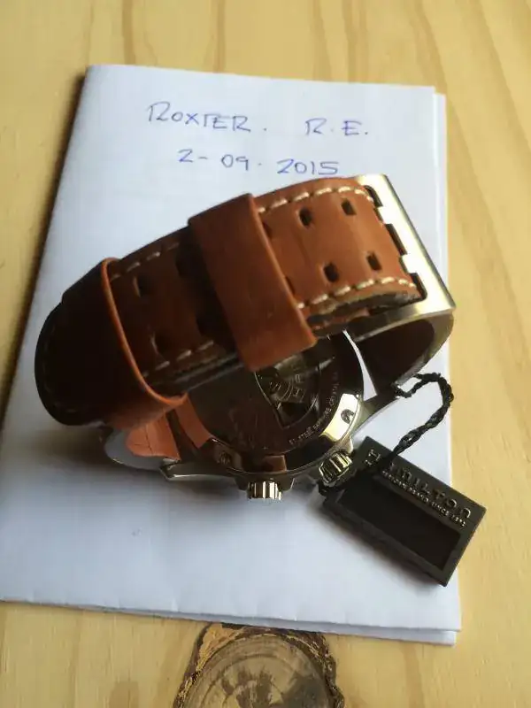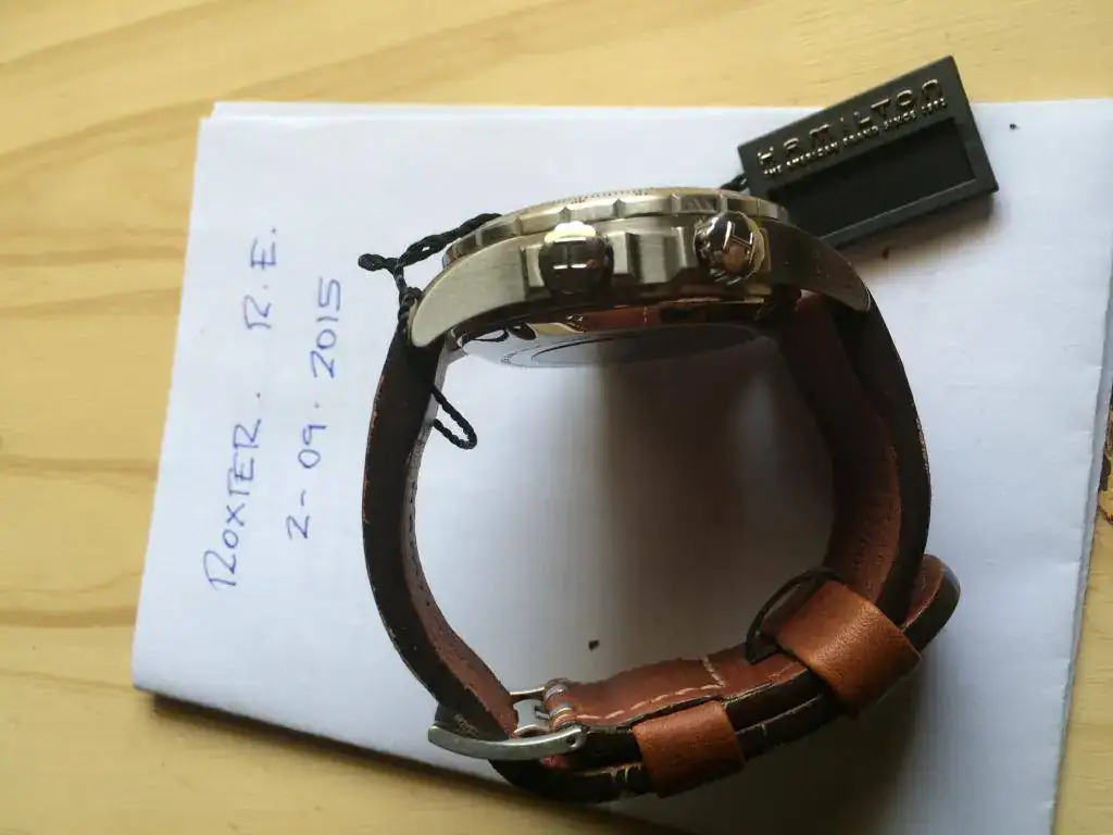 Está en perfecto estado, de auténtico reestreno. Por mucho que miro no veo ninguna marca, ni siquiera en la hebilla de la correa, donde suelen aparecer con facilidad. Como he dicho antes, no lo uso. Es lógico que se encuentre tan bien.
