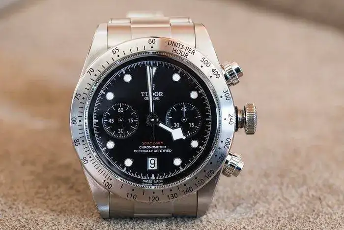 Pienso que el Black Bay Chrono es el segundo cronógrafo más importante de la historia de Tudor. Sólo por detrás del mítico Oysterdate de 1970, que ocupa el trono por su significado y por rompedor. Pero este crono es otra cosa. Es un golpe contundente sobre la mesa de los cronógrafos de menos de 5000 euros. Es un cronógrafo que no está a años luz del Daytona y que inclusive nos trae a la memoria detalles de aquellos históricos Daytona de calibre manual.