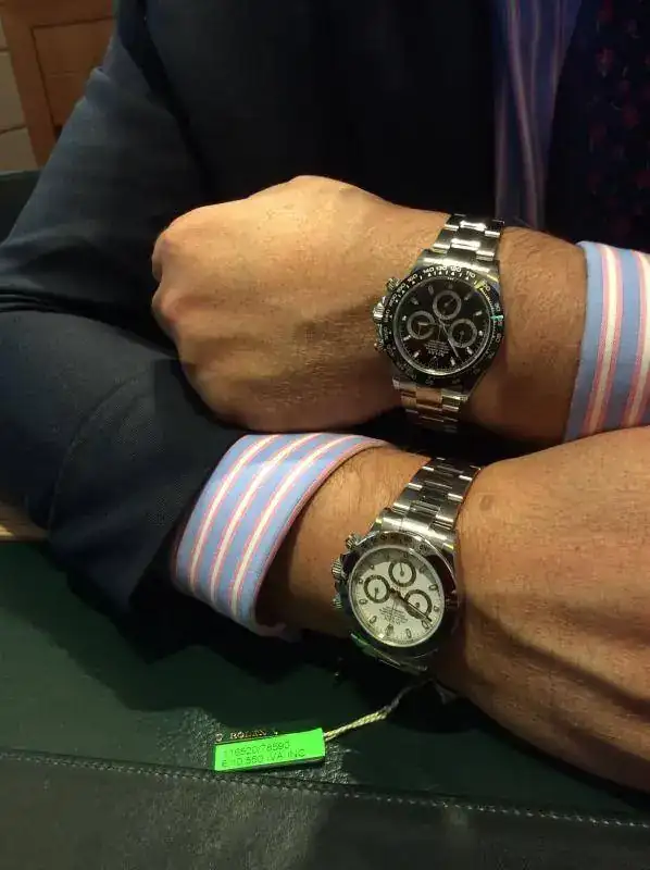Hombro con hombro los dos iconos. Las fotos refrendan un poco la sensación que tuve de que el nuevo Daytona negro se nota un poco más pequeño que el anterior, independientemente de que el blanco da la impresión de amplitud. Espero poder comprarlo pronto con el cerámico blanco: