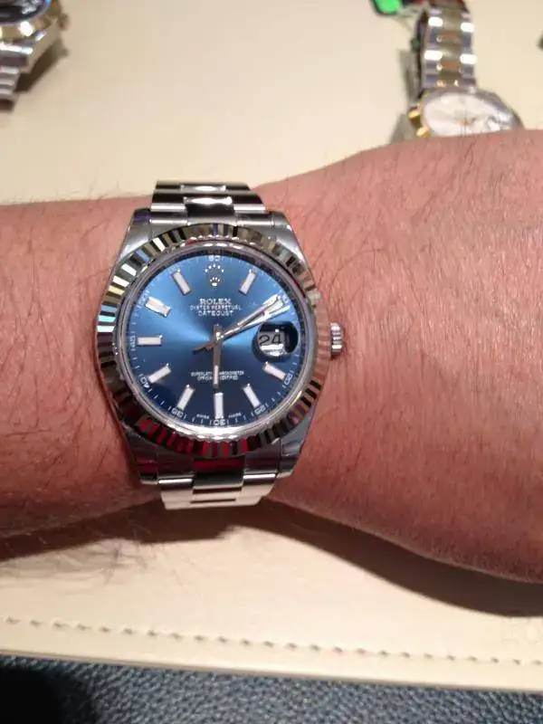 Me gusta y creo es un cambio acertado, el DJ de 42 es guapo pero siempr eme pareció que los indices son muy grande o las agujas demasiado finas y a nivel personal se ve desiquilibrado el tamaño indices agujas, en cambio con una agujas mas anchas se veria mejor y a tus fotos me remito.