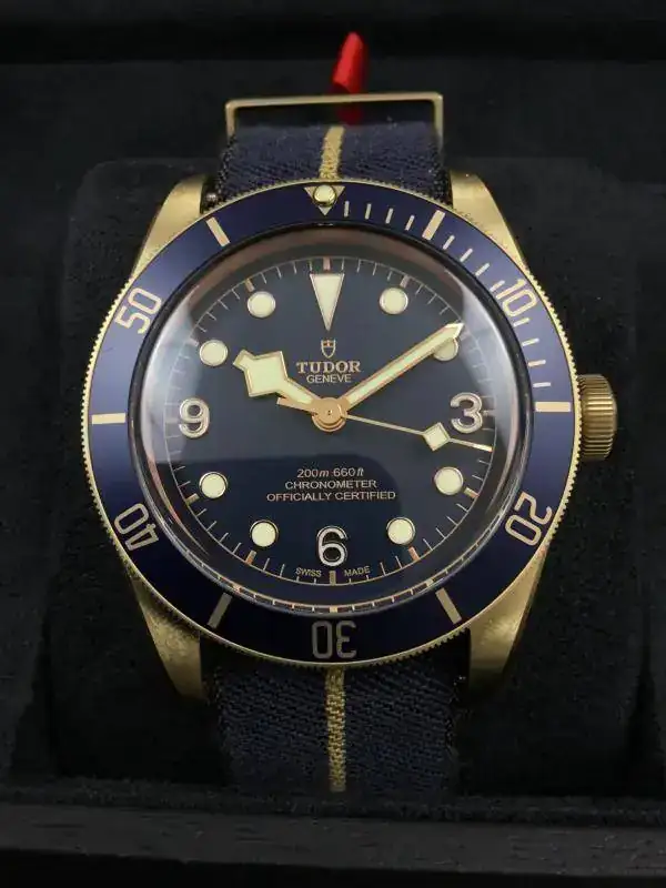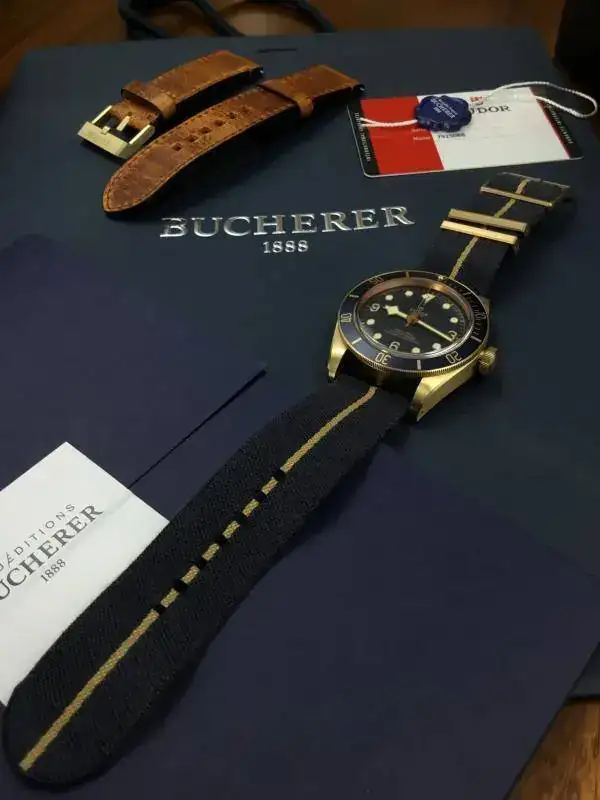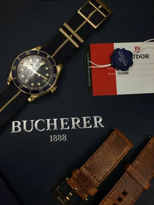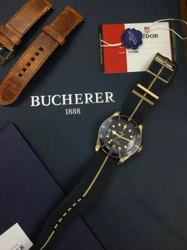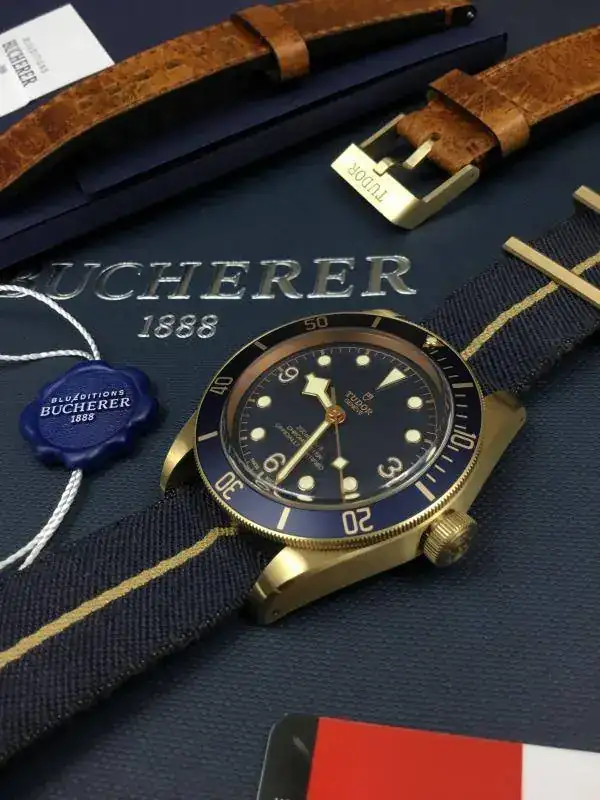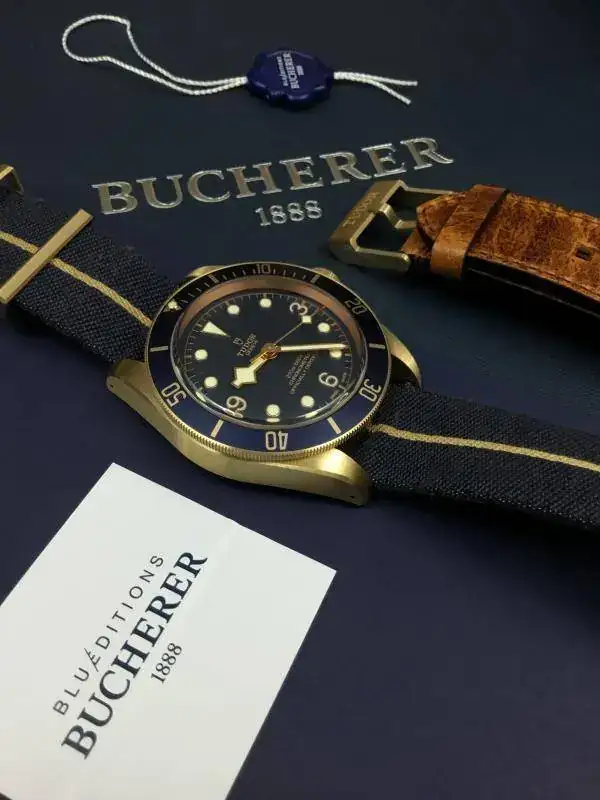 Debo decir que varias marcas lanzaron sendas ediciones Bucherer con ese carácterístico azul, todas estaban en exhibición en la tienda, salvo la de Tudor.. Que no se puede encontrar por ninguna parte. Ahí lo dejo.
