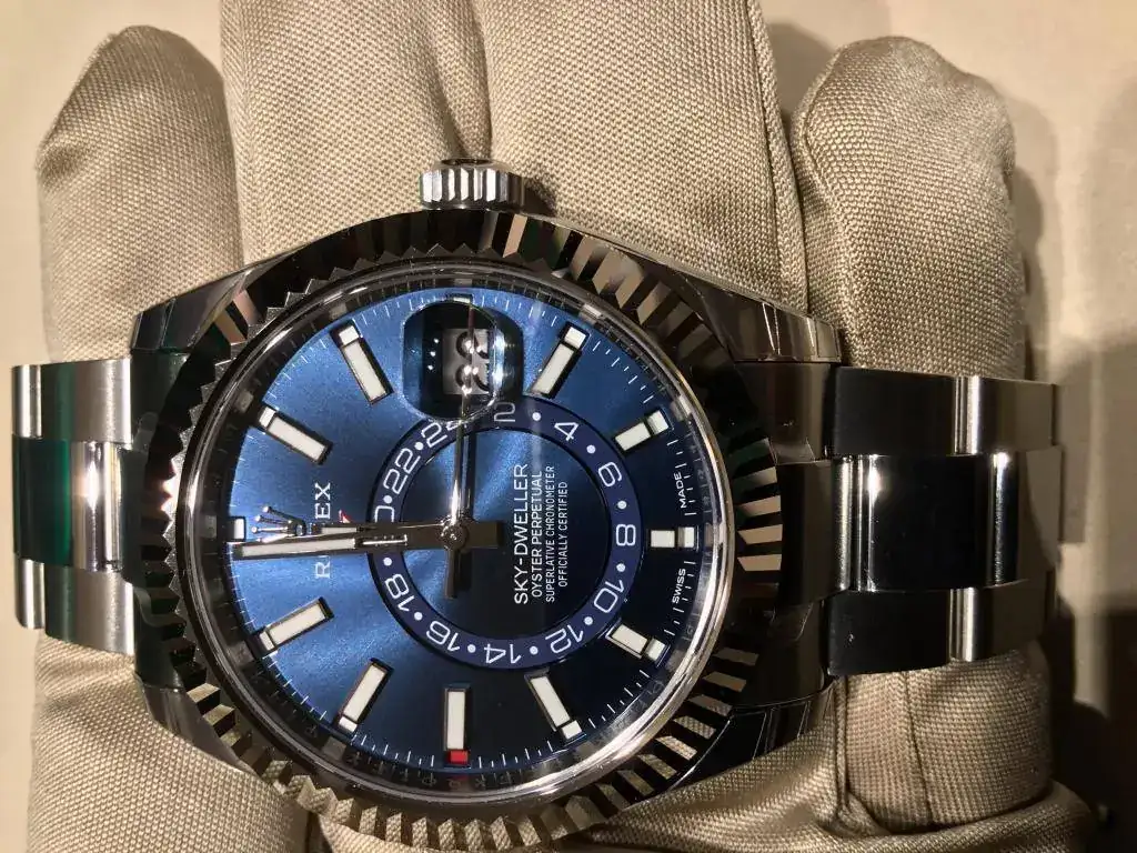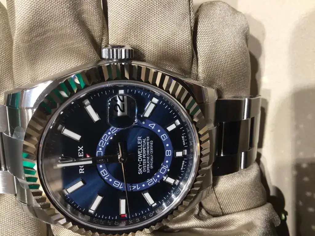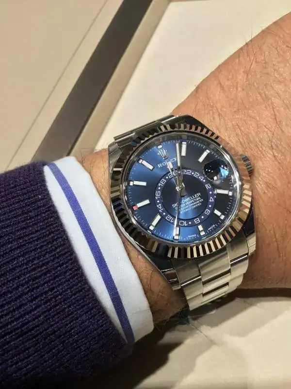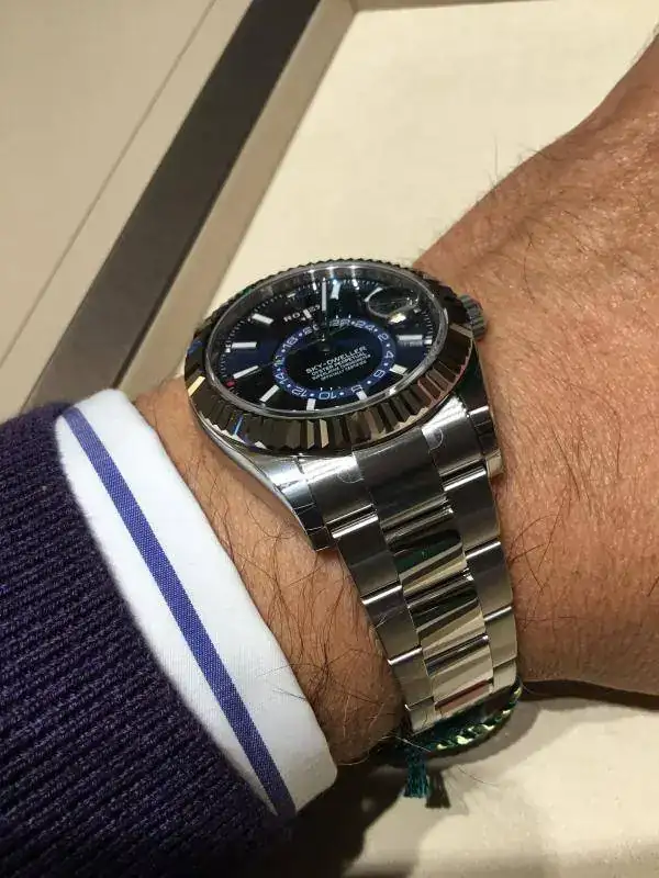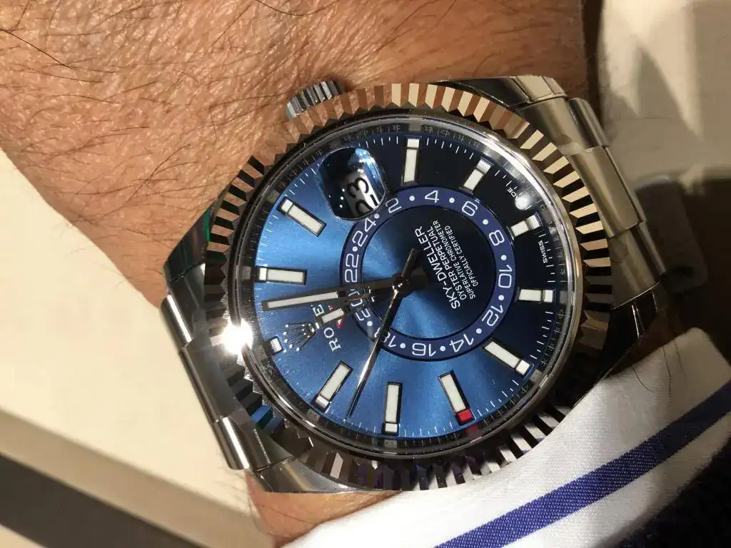 Pero no es lo anterior lo que hace grande al Sky Dweller. Lo más grande es que Rolex ha creado este reloj con calendario anual y doble huso horario con unas características que muchas marcas no son capaces de poner en un reloj sólo hora: Hermético a 100m (esto es muy complicado dada la operatividad del bisel Ring Command), reserva de marcha de 72 horas, Cronómetro Certificado COSC, parada de segundero, ajuste rápido de hora, ajuste de todas las funciones sin restricción de la hora del día, automático con posibilidad de carga manual. Es que no le falta nada!