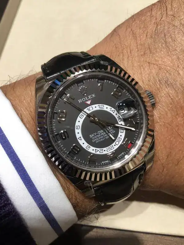 Aquí tenemos un Sky Dweller de oro blanco, con correa de piel. Antes era el Sky Dweller que más me gustaba y sigue siendo una belleza: