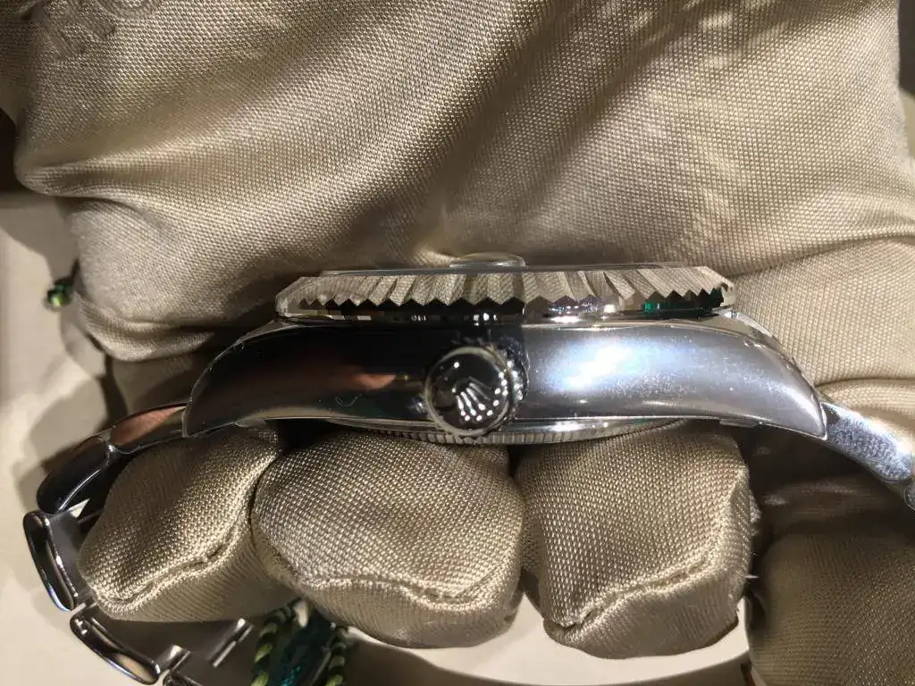 Atentos al detalle de la corona, que está perfectamente vertical. Podría ser este el detalle que Rolex se reserva para distinguir su reloj de oro del de acero? En línea con lo que comento acerca de las cajas de Daytona en mi hilo del 116500.