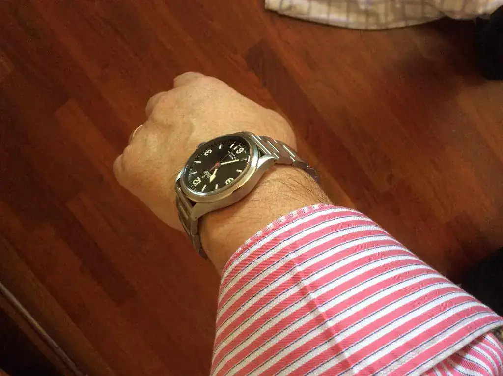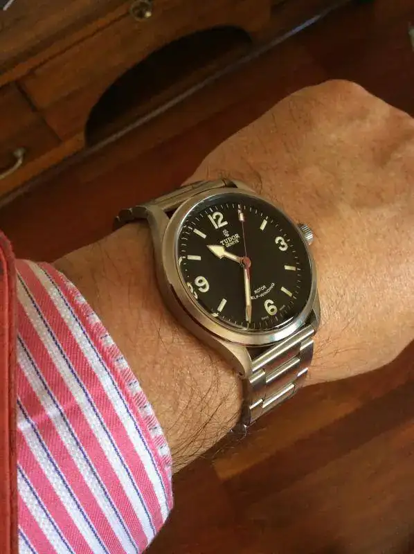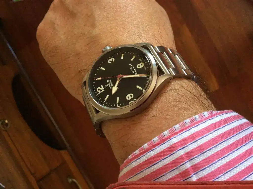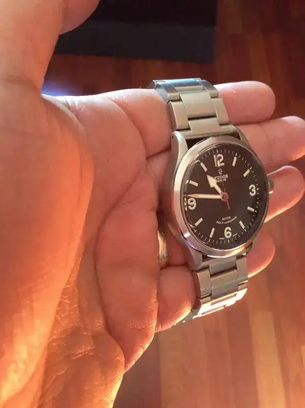 Aquí mi principal queja: Es un reloj grande, mucho más grande que el original. Sus 41 mm parecen más. Para mi muñeca de 18,5cm no es problema, pero para mi hubiese sido ideal con 38-40mm. Eso sí, entraría en territorio del Rolex Explorer actual, algo que no interesa a Rolex ni a Tudor.