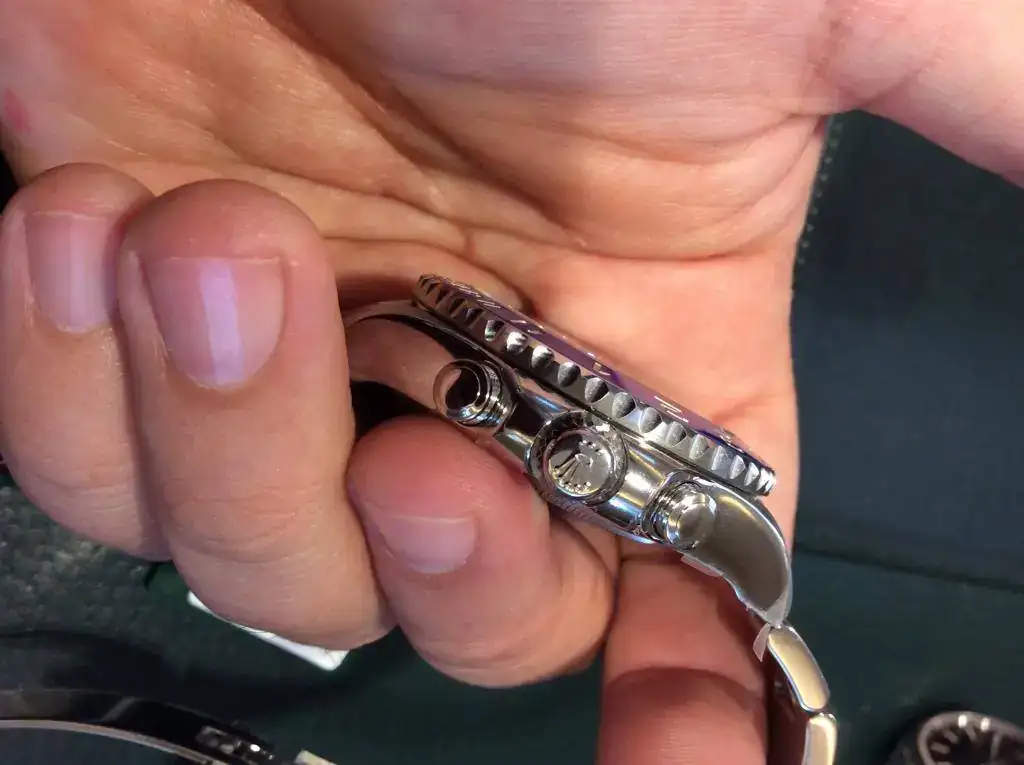 Por fuera en un reloj singular. Grande para estándares Rolex, mide unos 44mm y aparenta alguno más. Es pesado, se siente muy pesado para ser de acero.De las versiones en oro ni hablar, son como pesas de gimnasio (me gusta ese peso, debo decir).