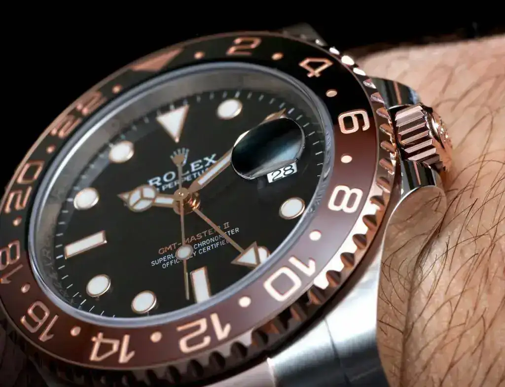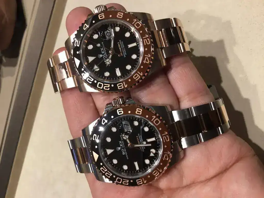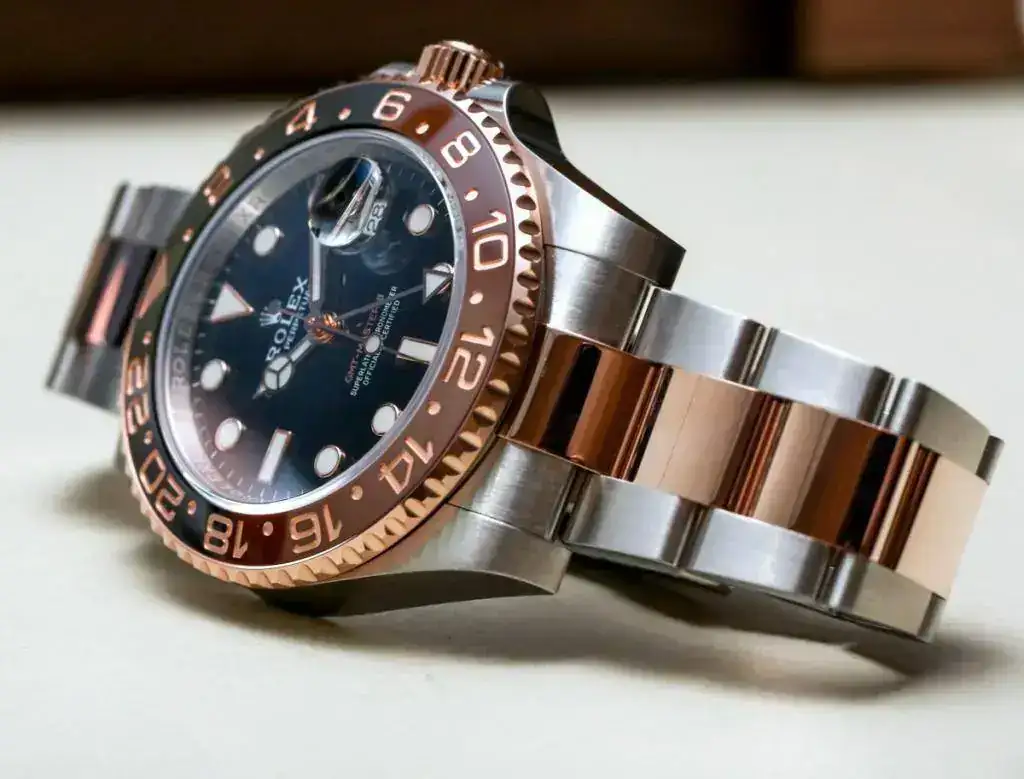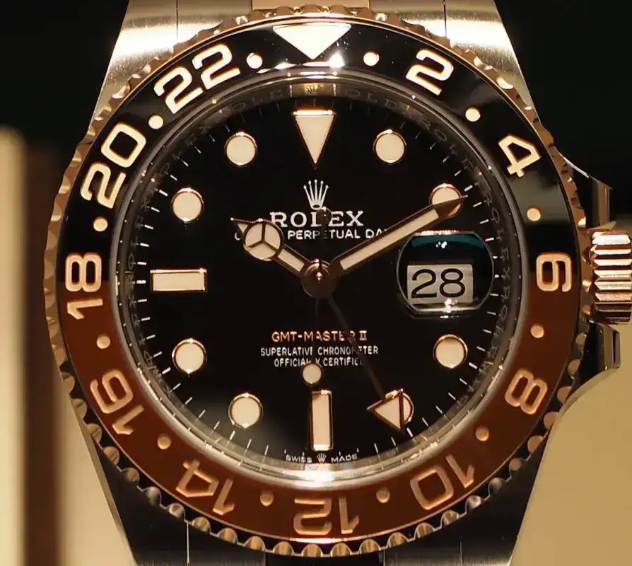 2. El nuevo GMT Master II Mixto Everose. Rolex es la marca reina de la relojería, y son también los reyes de los relojes mixtos. El nuevo GMT mixto eleva esta categoría a otro nivel. Pronto veremos como un reloj mixto se convierte en objeto del deseo y genera las tristemente célebres listas de espera. Lo cierto es que espero que este sea el reloj mixto más exitoso de Rolex de los ultimos tiempos. Mucho más que los Submariners y Daytonas mixtos por ejemplo.