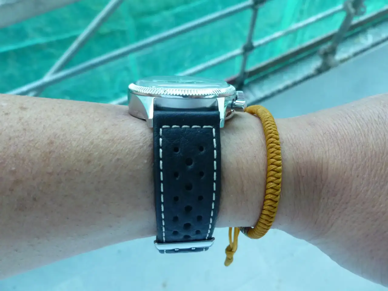 Os pongo unas fotos rápidas de esta mañana, cuando le he estado probando una correa que para mi, le queda muy bien. En estos momentos lo llevo de nuevo con su bund original. Supongo que iré alternando diferentes correas de piel de diferentes estilos y tonos.