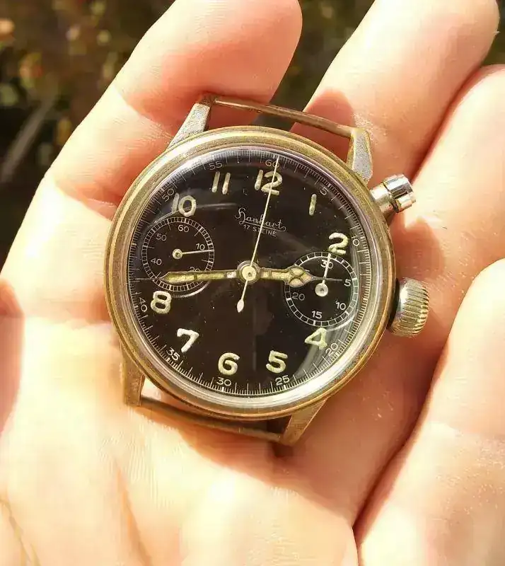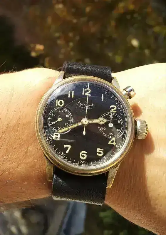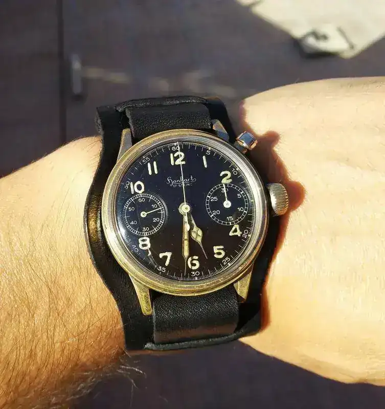 Con todas las dudas del mundo, pongo a la venta este Hanhart Kaliber 40, genuino cronógrafo alemán de 1943. Empleado por los pilotos de la lufwaffe en la segunda guerra mundial.