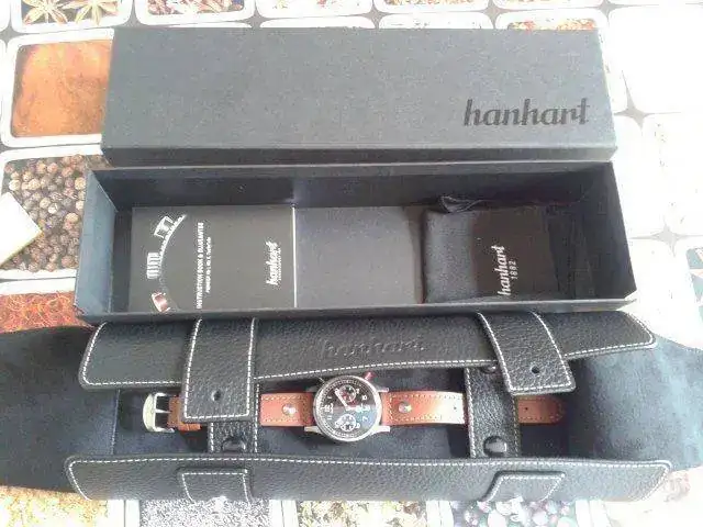 Vendo por no usar este cronógrafo Hanhart Pioneer TachyTele. Lo compré en concesionario oficial de Barcelona en abril del 2012, he sido su único propietario y ha sido usado en muy pocas ocasiones. Tan solo presenta algunos pelillos en las asas a causa del cambio de correas. Por lo demás está en perfecto estado.