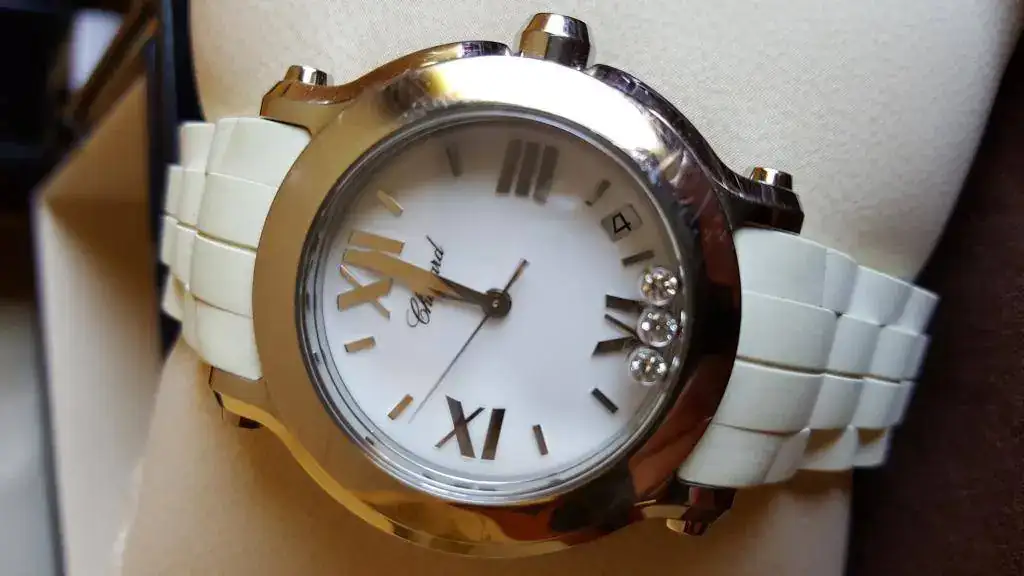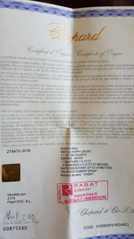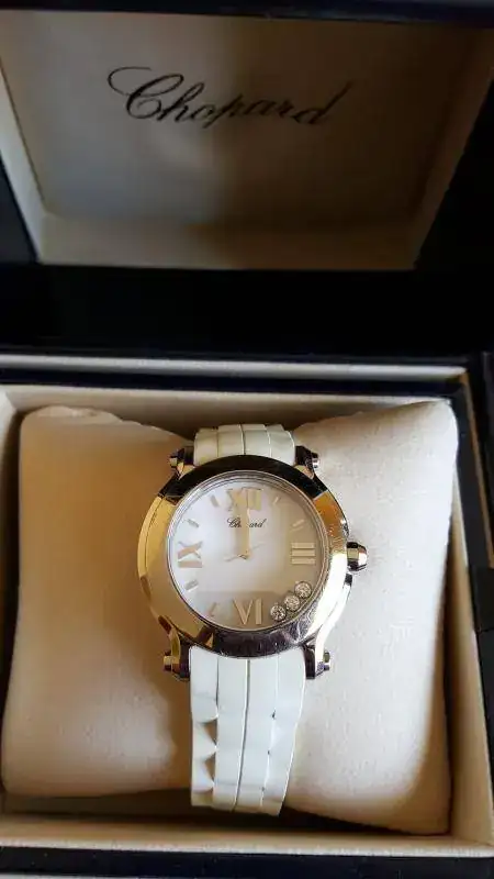 Buenos días, pongo a disposición este reloj de mujer de la casa CHOPARD. Su funcionamiento es perfecto. Recién cambiada pila. Para ser honestos, el precio que se pone es porque el reloj tiene alguna que otra raya (superflua) en el bisel y el caucho de la correa a perdido su color inicial blanco. Por ello y a razón de que cualquier interesado/a lo comprara, tendría que invertir un poco de dinero para dejarlo al 100%.