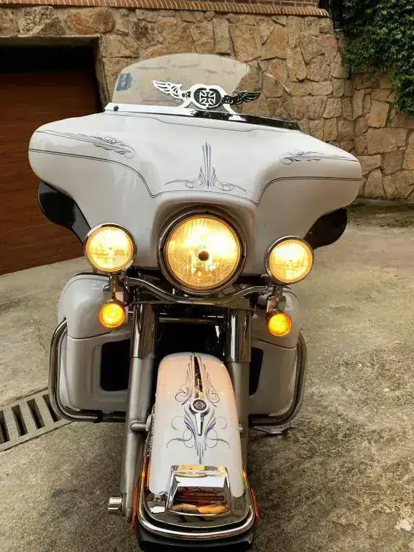 Modelo 2.012, muchos extras que mejoran aún más la moto tal y como sale de fábrica. como la suspensión progresiva, marcha atrás, escapes [h=3]VANCE & HINES[/h] , luces blancas de "Bala" en los intermitente y luces en el Tour Pack, puños calefactados, pintura especial a mano etc etc etc.