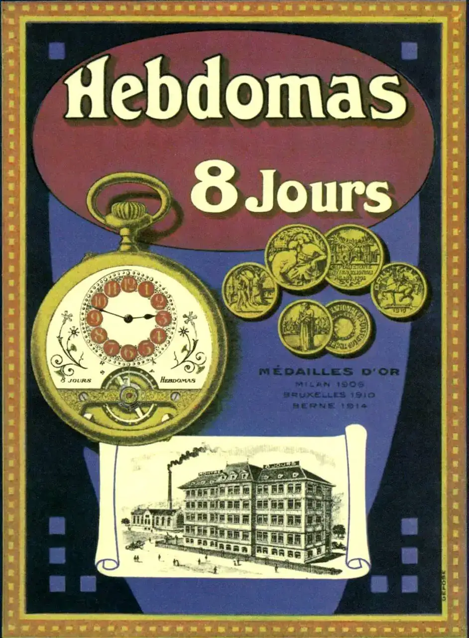 Su tema favorito era la reserva de marcha, uno de los puntos débiles de los relojes de bolsillo a pesar de su gran tamaño. Irénée Aubry hizo algo al respecto, ideando un concepto por el que obtuvo la patente no. 88 el 10 de enero de 1889: un reloj que, una vez que se le daba cuerda, podía funcionar solo durante ocho días seguidos. La empresa relojera Graizely Frères adquirió sus patentes y registró la marca Hebdomas. Graizely añadió su propia patente para un órgano regulador visible a través de la esfera, y así nació uno de los éxitos relojeros más importantes, que duró desde la década de 1890 hasta la de 1930. Prácticos, asequibles, esbeltos y reconocidos con varios premios en ferias mundiales, los relojes de bolsillo Hebdomas fueron fabricados en La Chaux-de-Fonds por la empresa rebautizada Graizely et Cie, que más tarde se convirtió en Schild & Cie.