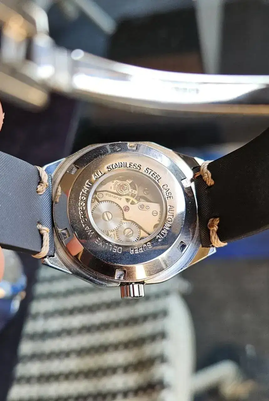 La caja tiene resistencia al agua, es de acero inoxidable y el cristal es mineral. Esto último es un contra, particularmente uno que a mi me resulta difícil de tolerar. Pero siendo una caja antigua es entendible y es verdad que al ser mineral tiene muchísima claridad, cero reflejos, y te permite disfrutar del dial en todo su esplendor.