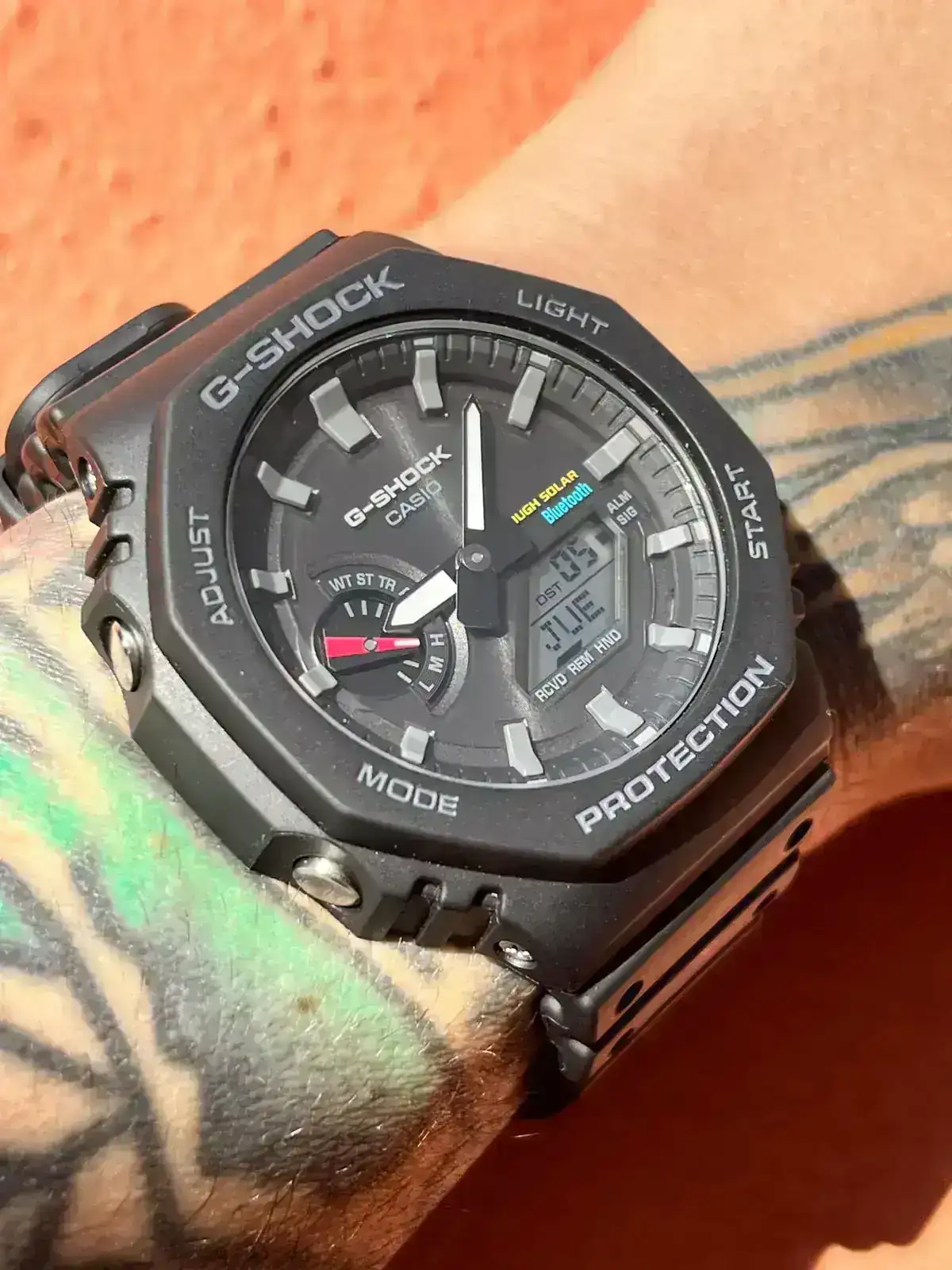Pues ya lo tengo, he pillado este GA-B2100 solar y con bluetooth (tiene funciones que para mi son exactamente eso, funcionales, como alarmas, recordatorios, hora mundial... ) todo configurable desde la app de Casio, todo muy sencillo de hacer y me reitero, cosas que me resultan útiles, por 114€ puesto en casa! Me parece un disparate lo que puede ofrecer un reloj así por ese módico precio.