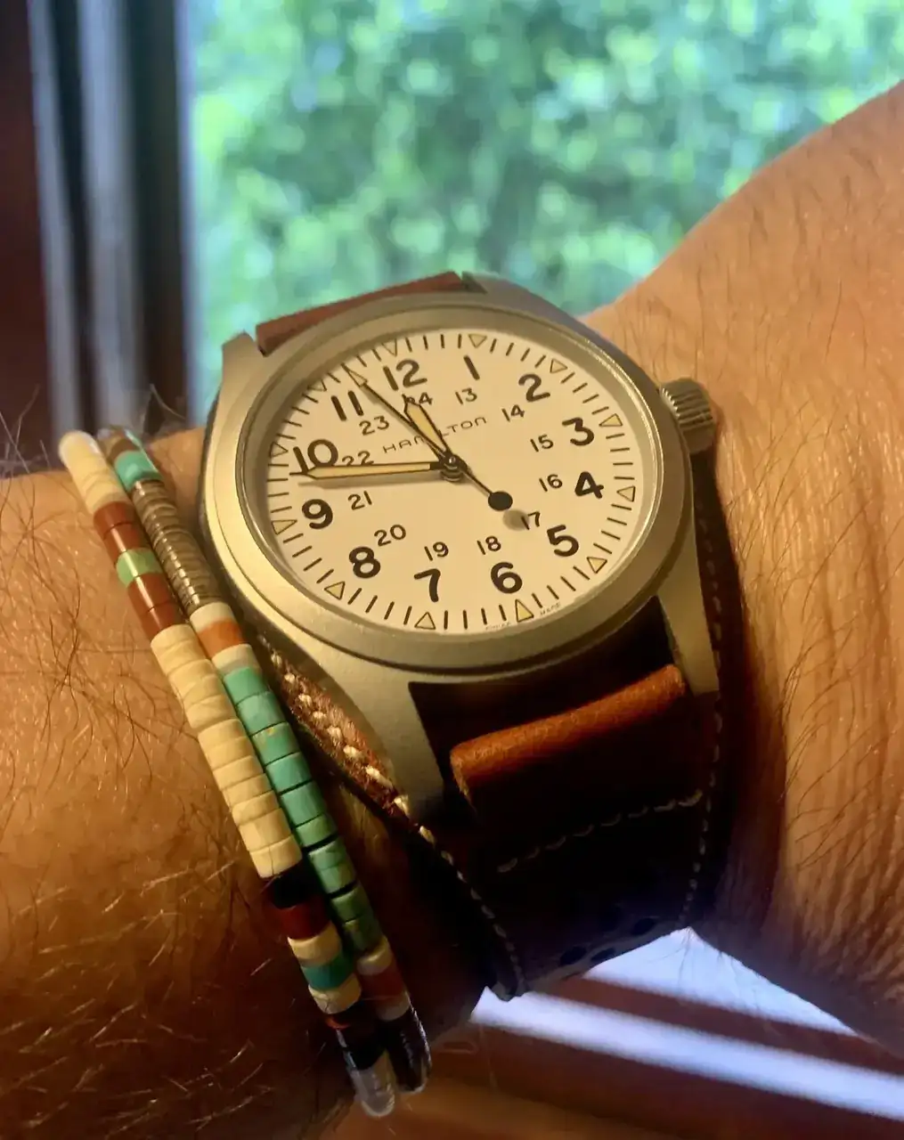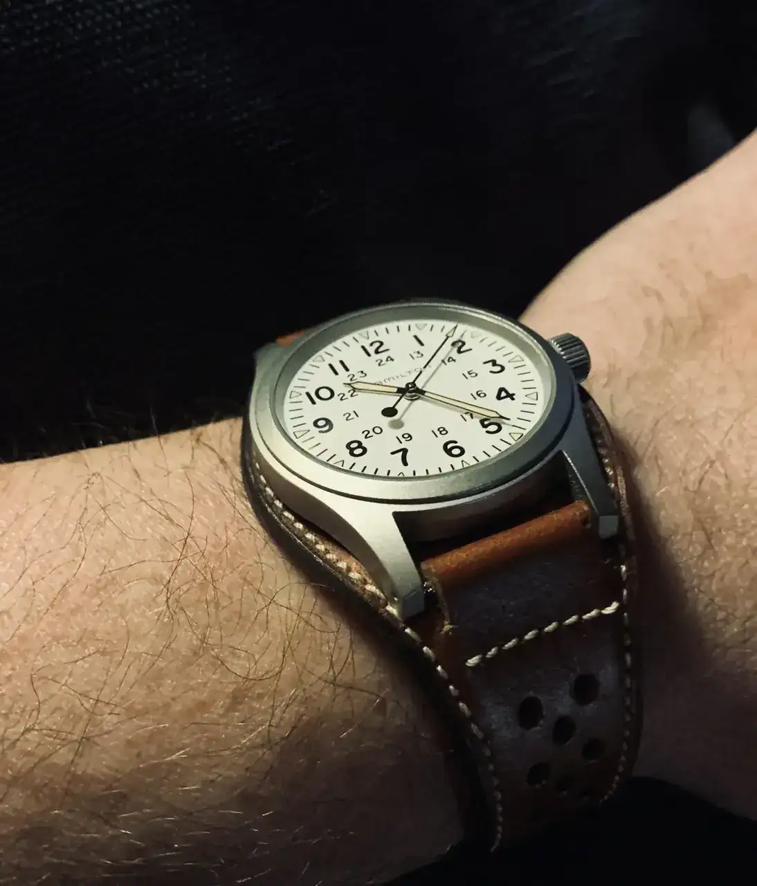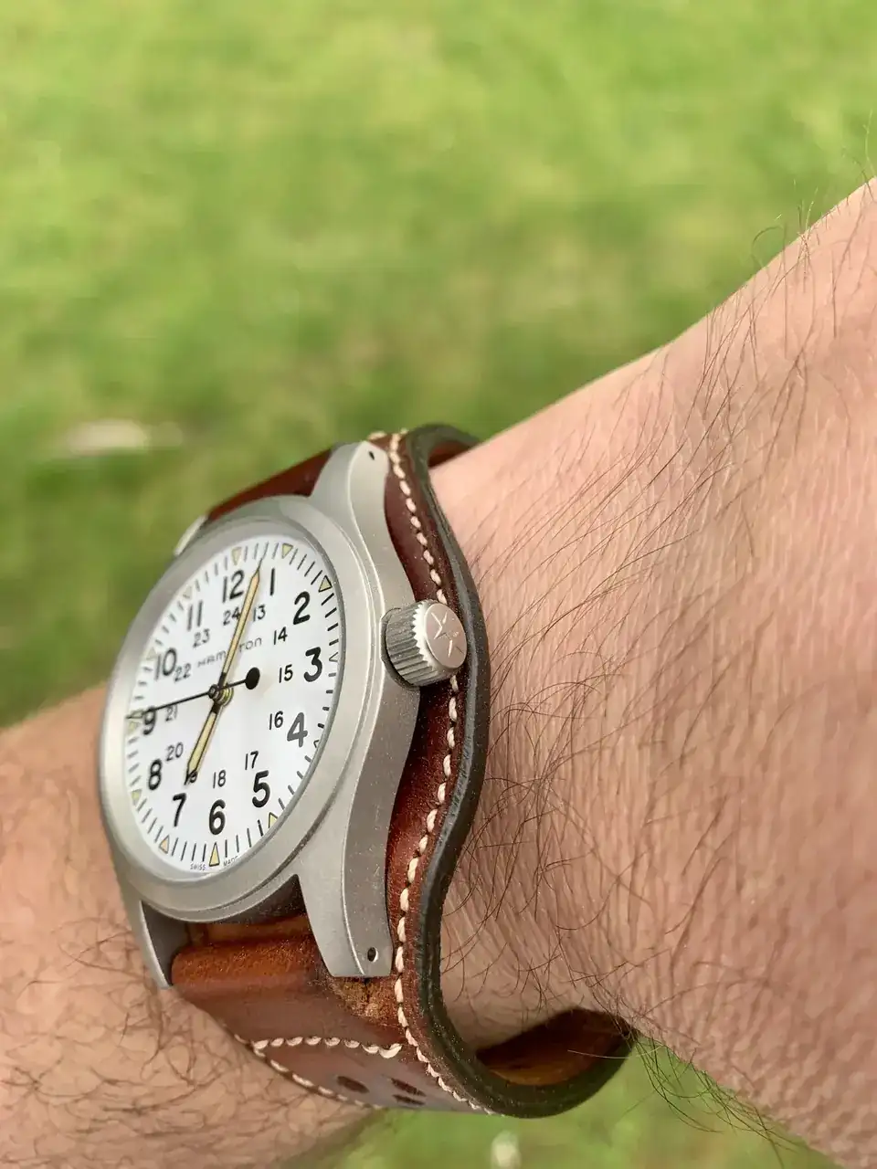 Y por fin, hoy ha llegado un Hamilton Khaki con esfera champán que muestro aquí para que me digáis si el resultado ha valido la pena o estoy loco de atar por comprar un reloj para usar una correa.