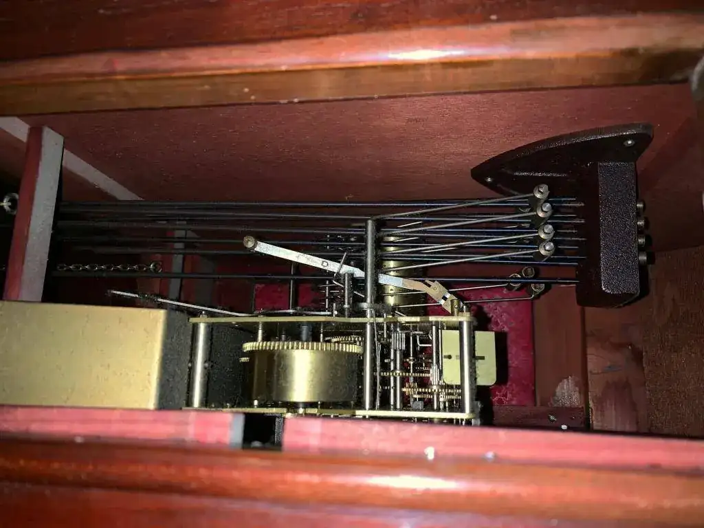 Lo que ocurre es que ahora no se muy bien como continuar con el, no tengo ni idea de este tipo de relojes. A simple vista es obvio que no tiene las pesas o péndulos que cuelgan, pero realmente no se si son necesarios o si son decorativos. No se como comprobar si pudiera funciona, ni si quiera se que es lo primero que tendría que comprobar
