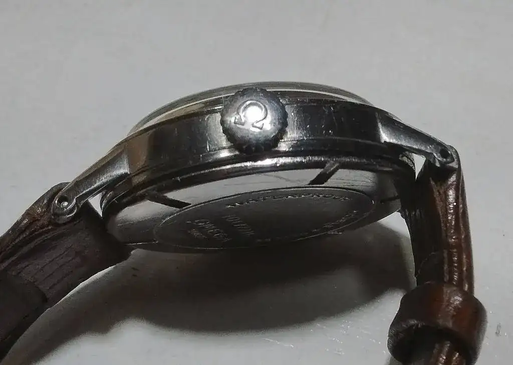 Ese 110 en la pata también debe estar en la tapa por dentro y es un control interno de la casa Omega.Aquí te dejo las otras caras de la misma moneda. Ayer lo estuve viendo de nuevo, lo abrí y dentro sólo pone, en un lateral y chiquito, 110. En una pata también lo pone.