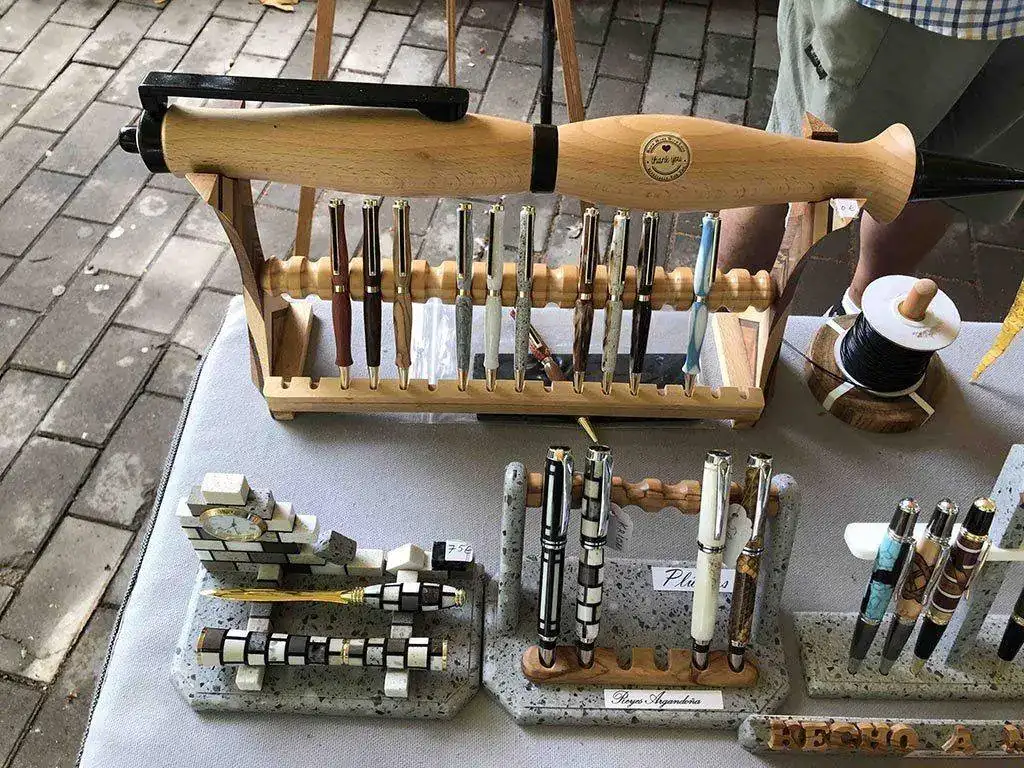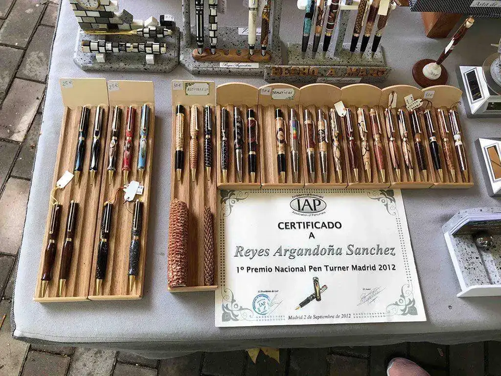 Hola, esta mañana en Valencia, en las Cuevas de San José, por pura casualidad, mi novia ha descubierto un pequeño puesto ¡de plumas! Plumas fabricadas por Reyes Argandoña Sánchez. Es un artesano que, por pura vocación, se ha dedicado en los últimos años a fabricar unas estupendas y originales plumas. Yo he aprovechado para "agenciarme" una. Voy a incluir unas fotos porque me parece que es interesante para todos revalorizar estas iniciativas tan cercanas a nosotros. Si el moderador no le parece apropiado puede borrar el hilo sin problemas.