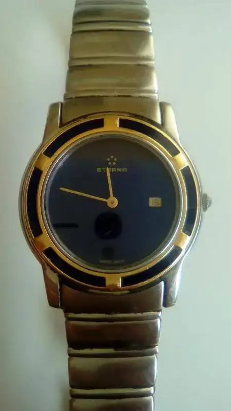 Muy buenas compañeros, hace un año más o menos mi abuela (más maja que las pesetas) me regaló un reloj Eterna que había pertenecido a su marido (ya fallecido). Ella me confirmó que había sido comprado en una joyería de Oviedo en los 80-90, pero no recuerda el nombre ni el año exacto, y no poseo más datos del reloj que los que muestran las fotos.