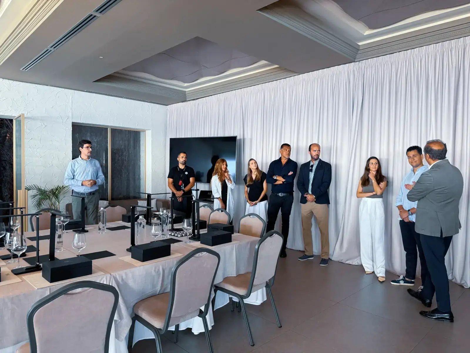 Breve presentación de lo que sucederá durante el día. Nos presentan a representantes de marca de IWC, maestro relojero de IWC de Madrid (Rogelio, un verdadero crack), comerciales de la marca, representantes de Mercedes-AMG de A Coruña, Andrés de Joyería Calvo, el organizador de todo este sarao...