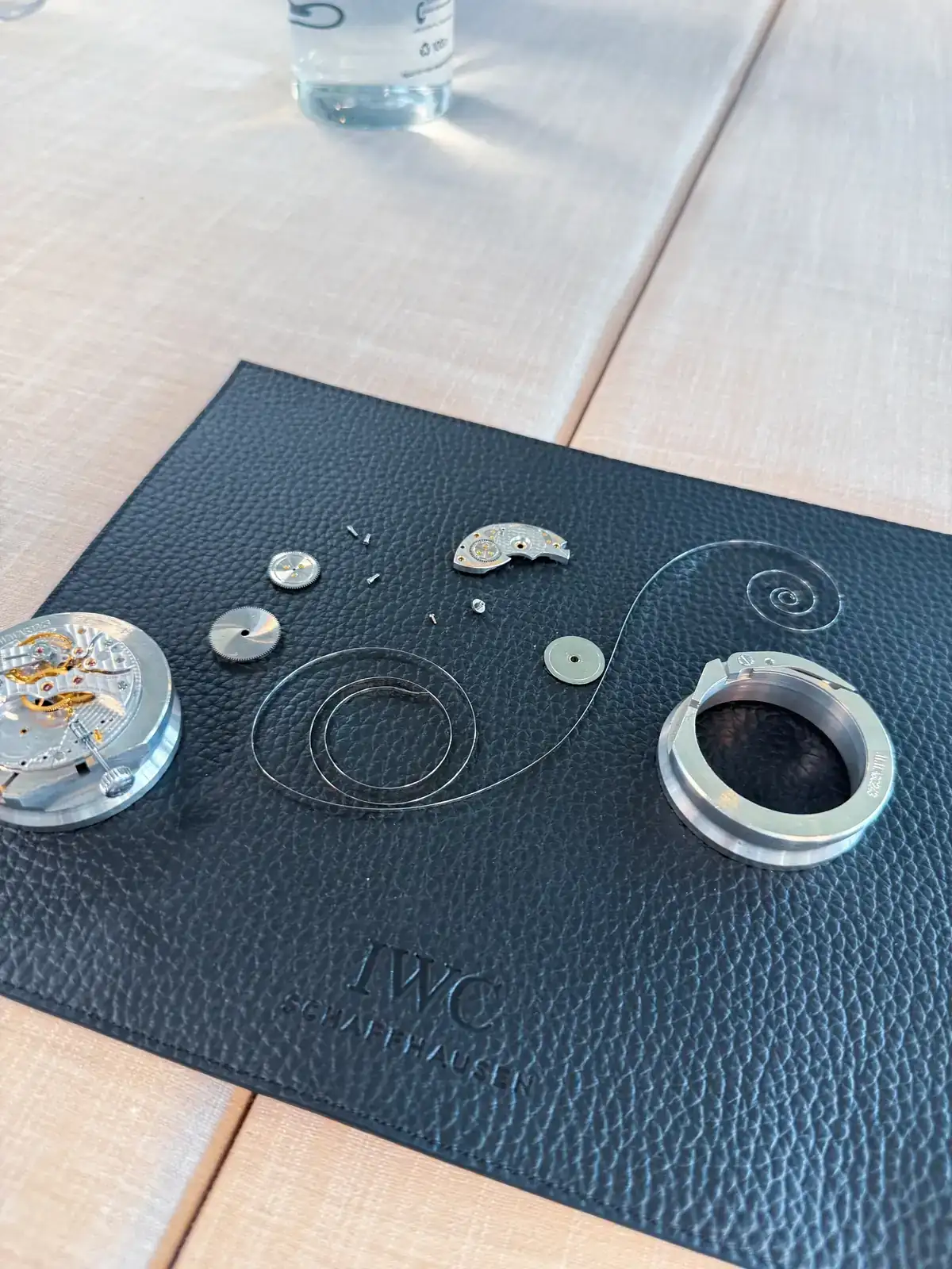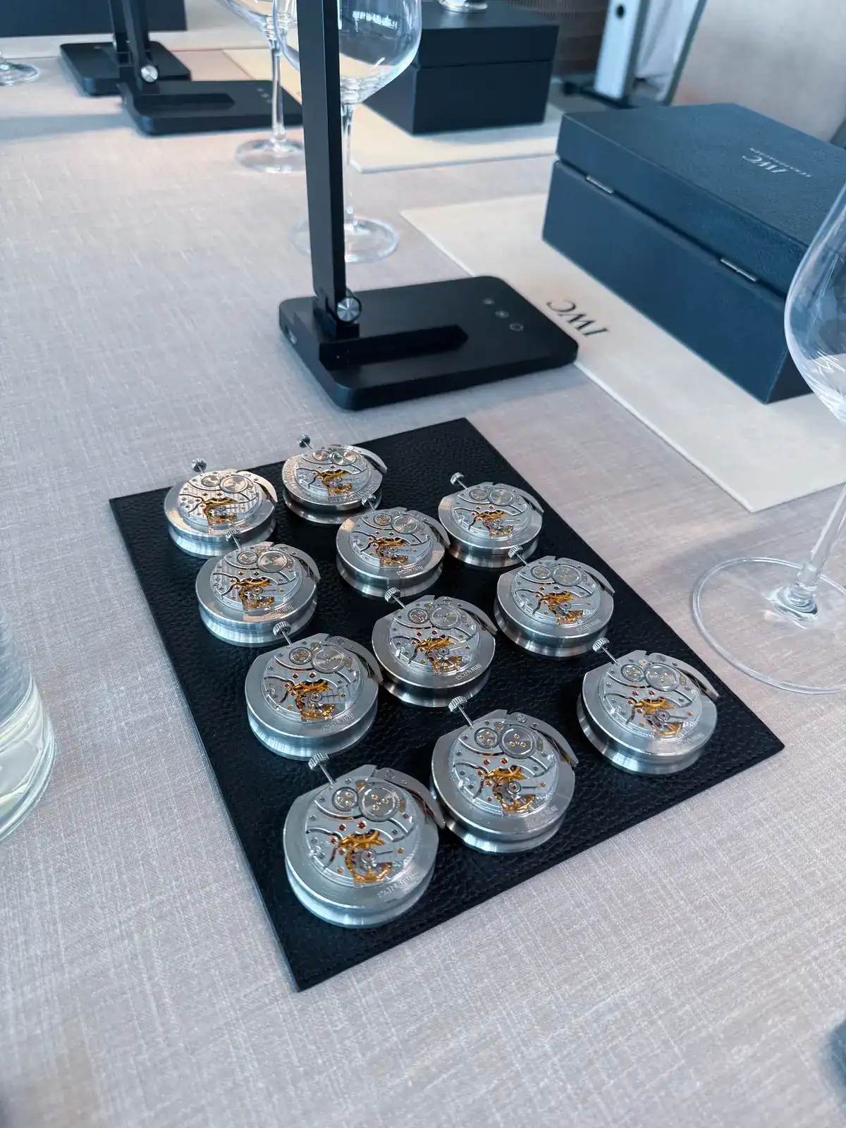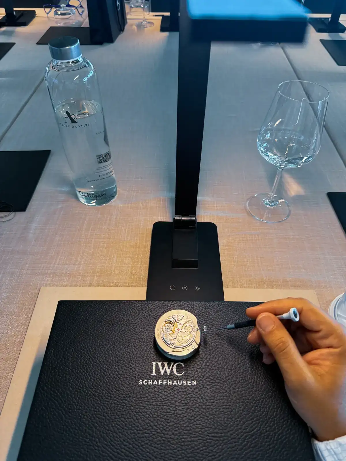 Una vez terminamos de probar todos los AMGS, con la adrenalina bien arriba, es el turno de entrar en la zona de IWC que nos había preparado Joyería Calvo. Volvemos a la zona de presentación inicial y nos sueltan el bombazo: "Hoy vais a ser relojeros por unas horas, y vais a estar dirigidos en todo momento por el maestro de IWC Rogelio ! Vais a montar un calibre"