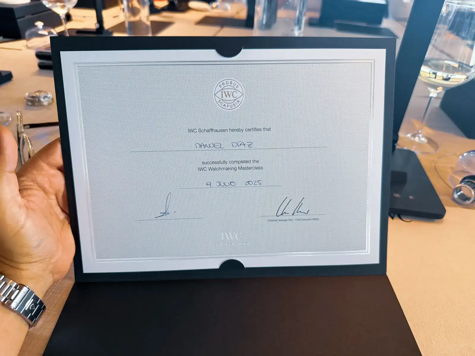 Al terminar de montar nuestro calibre y de comprobar su funcionamiento, BOOM! diploma de IWC para cada asistente... "nivel 1 de relojero acreditado por IWC" jajjajaja... La experiencia no podía estar siendo más maravillosa!