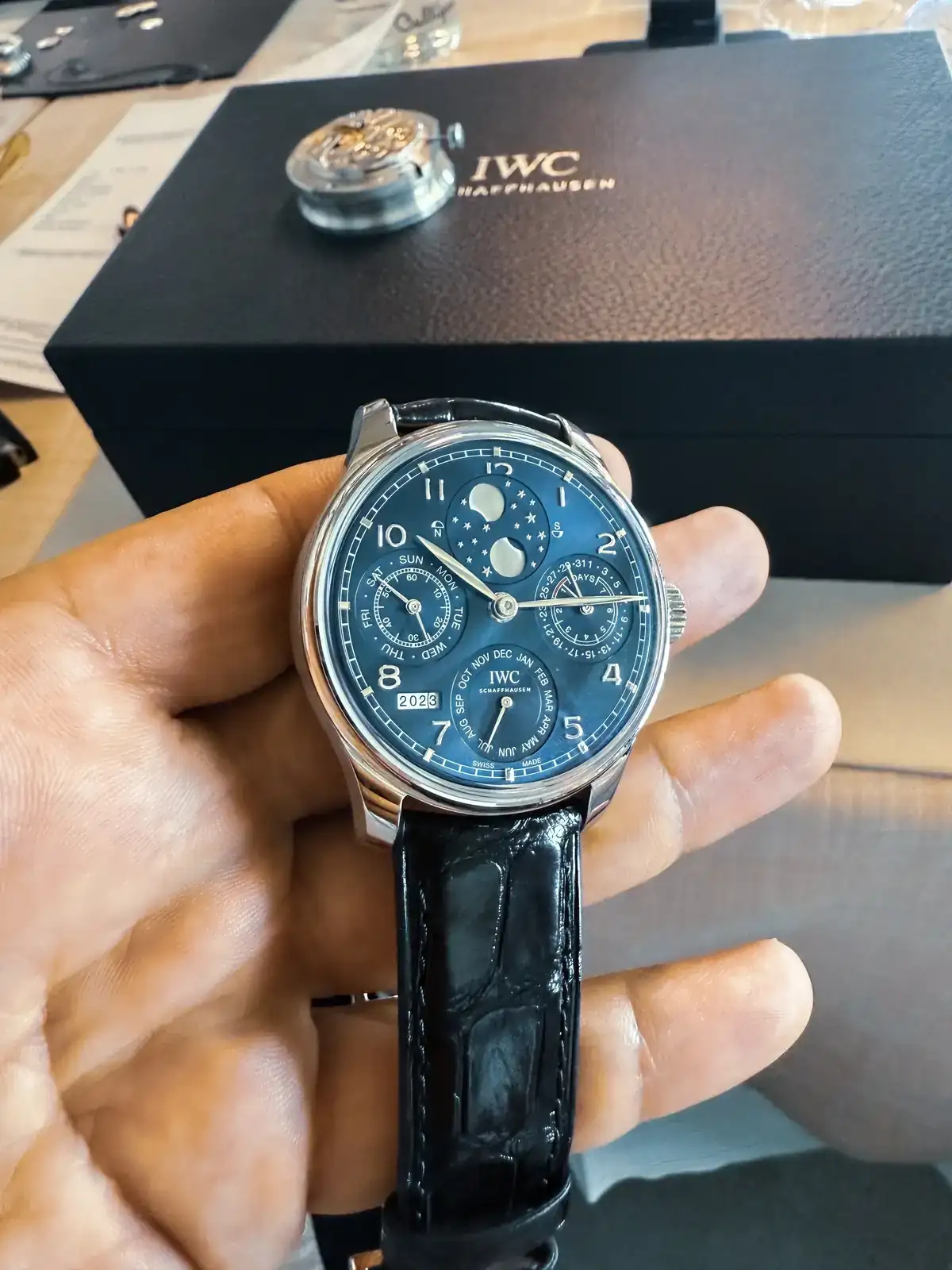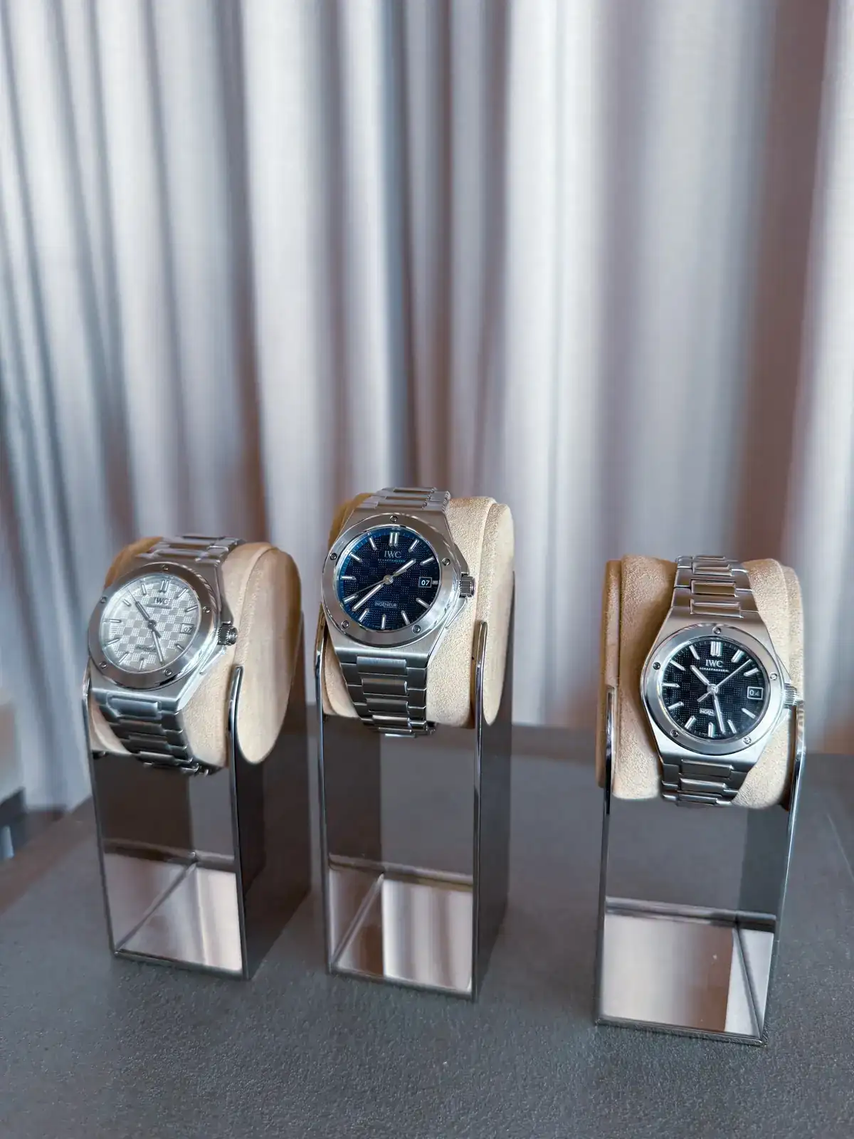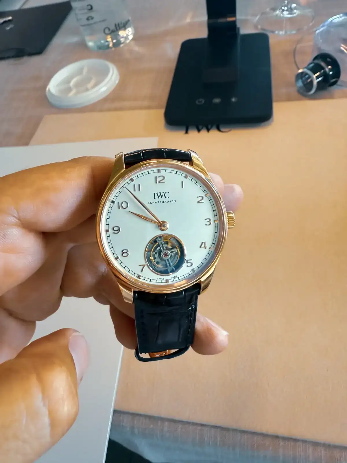 Empiezan a sacar cosillas... y mi pulso empieza a acelerarse, se está acercando a mi una preciosa bandeja con varios IWCs increibles... perpetual, iwc tourbillon (mi bolsillo no alcanza para esos..), y como no, a lo que venia, mis esperados IWC Ingenieurs!