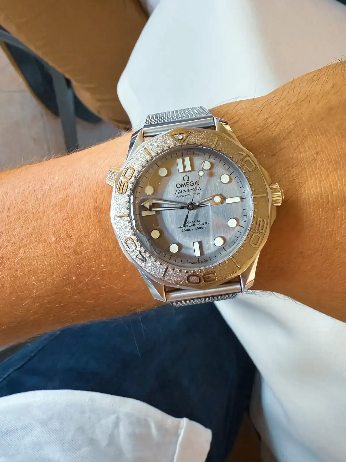 Ya en la mesa, listos para comer, puedo probarme alguno de los relojes de los asistentes, me sorprendió gratamente este omega... una preciosidad.