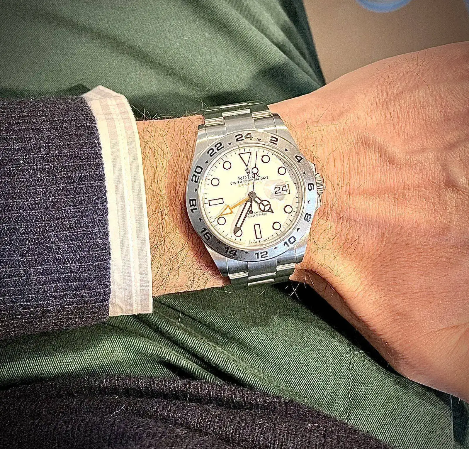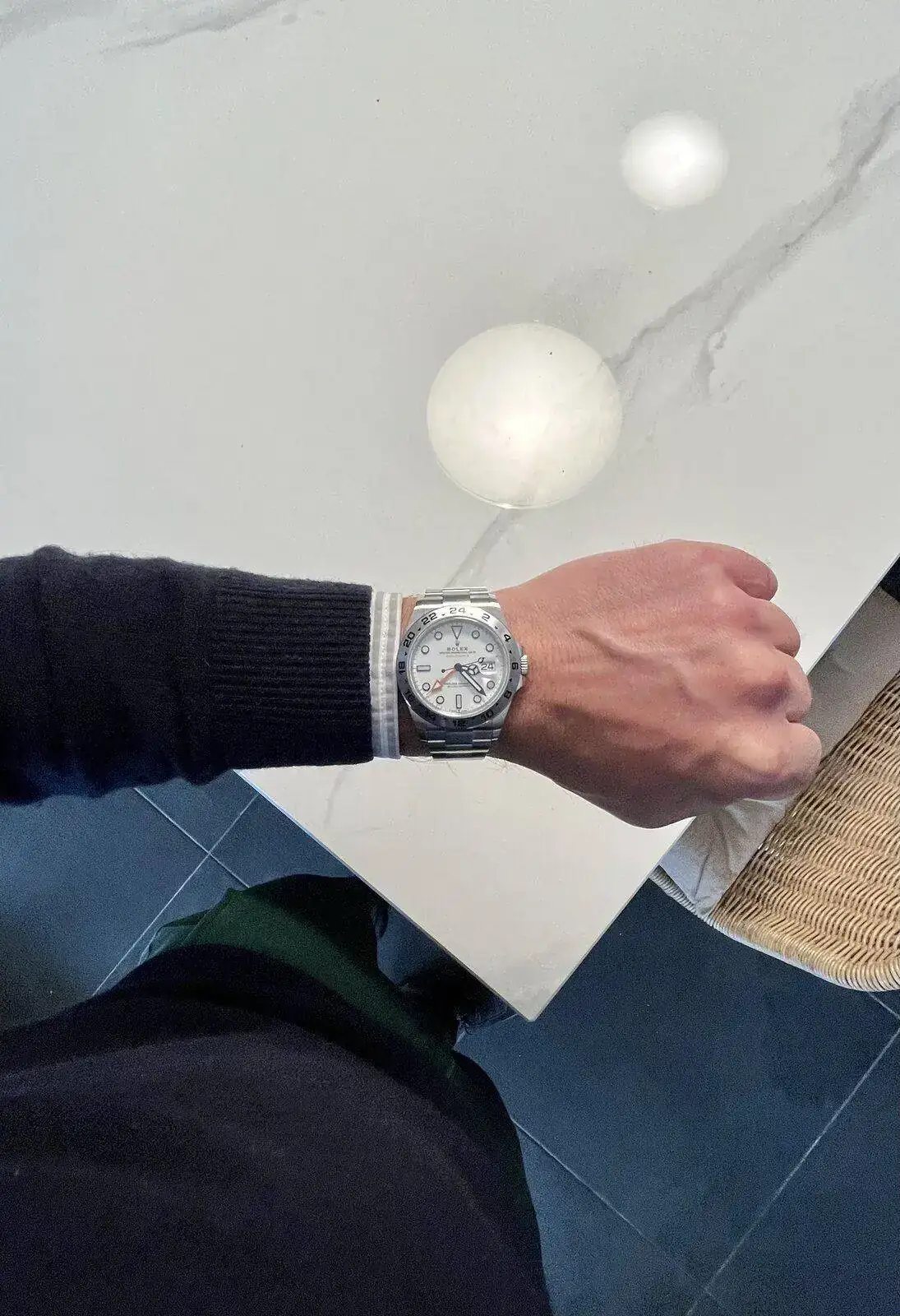 Enhorabuena Lou, es un reloj precioso y muy interesante. A mi parecer más que los GMT Máster, por lo que anda un poco olvidado. Legible como pocos, herramienta, discreto, robusto... yo solo encuentro una pega, que es común en realidad a todos los que no son un Sub. Que no trae un medio eslabón, algo absurdo, y mi caprichosa muñeca requiere de uno en todos los oyster, por lo que no puedo dejar centrado bien el cierre más que en el sub.