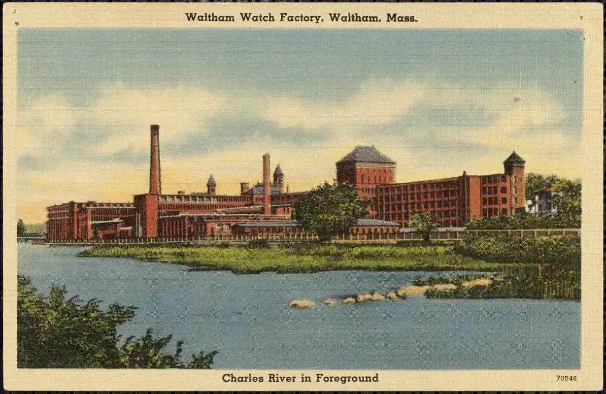 Y es ahí a donde quiero llegar también. Esto fue la fábrica de Waltham, histórico fabricante de relojes ferroviarios americanos:
