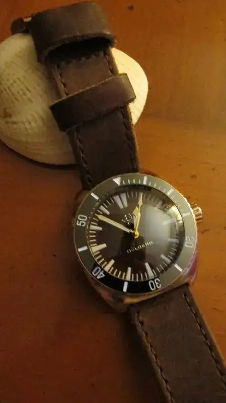 ESTE HELBERG CUENTA CON BISEL CERAMICO ,CRISTAL SUPERDOMED Y ESFERA ES MARRON. LAS CARACTERISTICAS TECNICAS LAS PODREIS VER EN ESTE ENLACE: