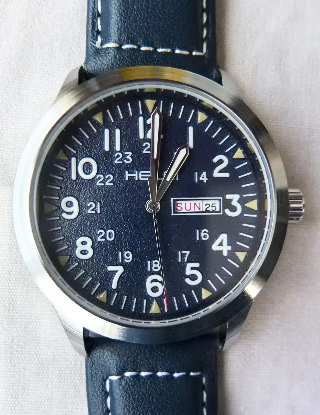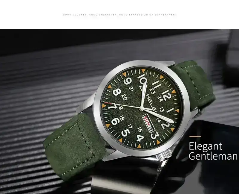Suelo vigilar la marca HELEI en Aliexpress debido a que a veces sacan modelos de aspecto clásico. Y efectivamente sacaron este con aspecto militar que me gustó por menos de 13€. La correa tiene una calidad justita, pero el reloj me resulta atractivo y con terminaciones más que decentes por ese precio.