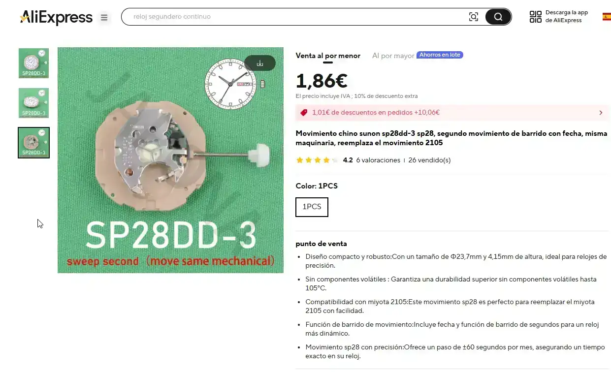 Y al igual que tengo relojes a los que les transplanté un VH31, a este le metí este SUNON SP28DD.