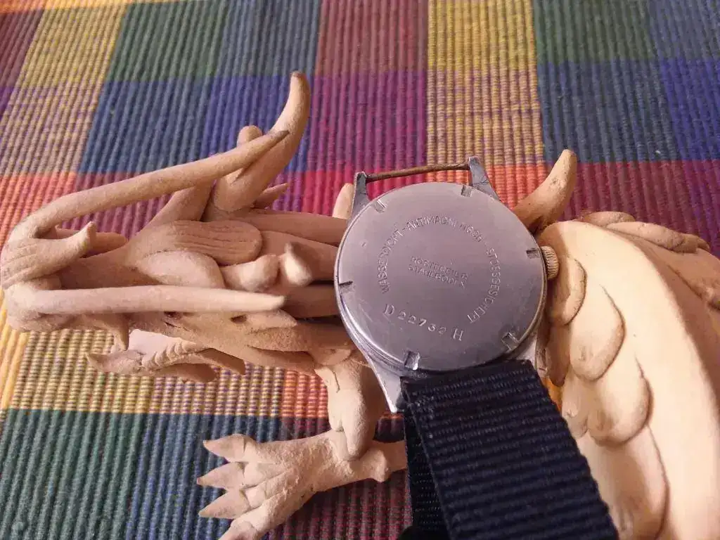 Otro compañero, Joan, me dijo que mi reloj pertenece al tercero de los seis lotes que registró el ejército alemán de la marca Helios, de los que 40399 fueron marcados como DH y usados por la wermatch. Los dos primeros lotes llevaron calibres AS1130, el tercero llevó tanto AS como Precimax, y los últimos sólo Precimax (P300).