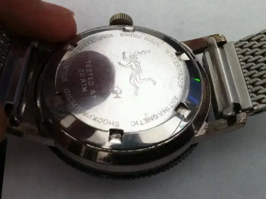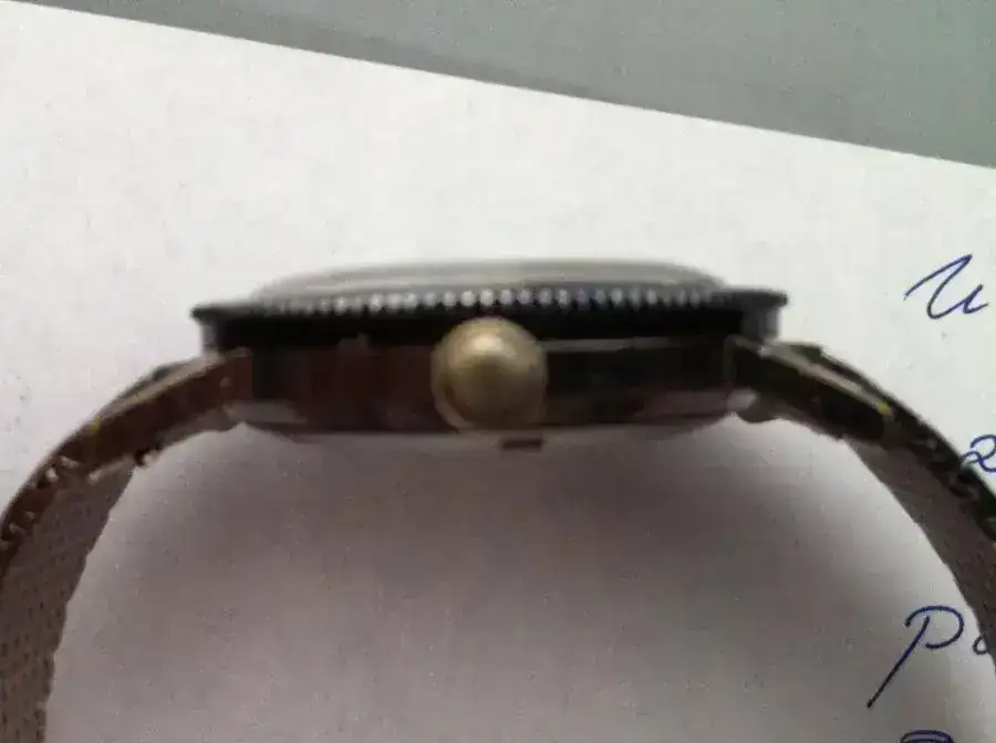 Tiene sus defectillos. El dial negro tiene una marca entre el minuto 50 y 52 apenas perceptible, debido a que está en la zona biselada. En la parte biselada de la trasera de la tapa tiene algún rasguño y pequeños golpes pero al estar en bisel tampoco se aprecian demasiado.
