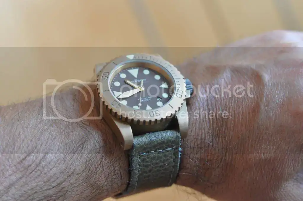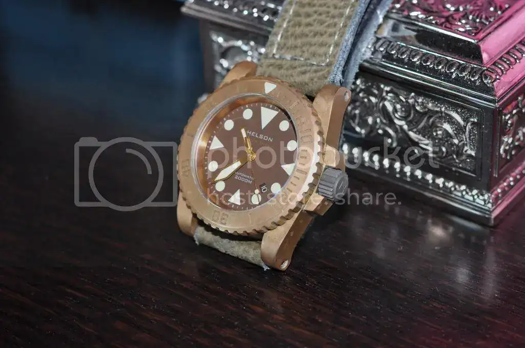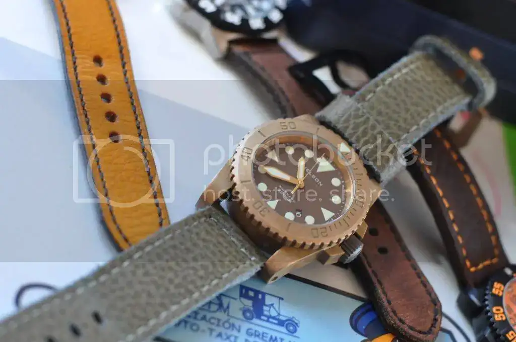 Por lo de siempre, pongo en venta mi estupendo HELSON BRONZE de 45mm completo de todo y con correa verde piel arrugada que le queda perfecta y hebilla de bronce original de 24 mm como extra. El reloj perfecto para el verano para muñecas que soporten un buen tamaño tipo Panerai.